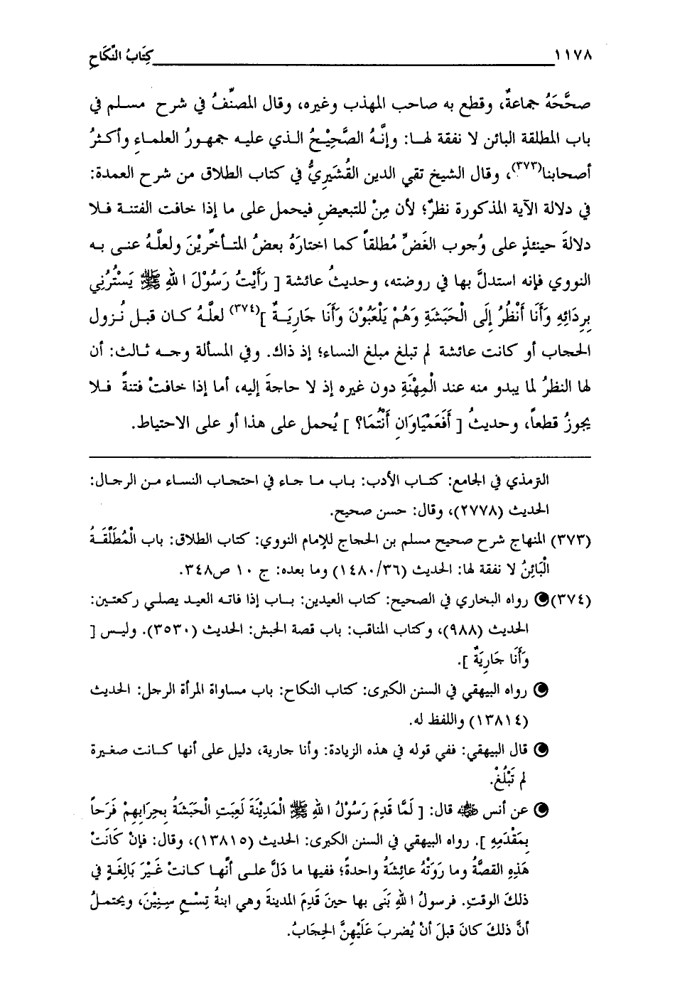 عن أنس - رضي الله عنه - قال: [لما قَدِمَ رسُولُ الله - صلى الله عليه وسلم - المَدِينَةَ لَعِبَتِ الحَبَشَهُ بِحِرَابِهم فَرَحًا بِمَقدَمِهِ]. رواه البيهقى في السنن الكبرى: الحديث (13815)، وقال: فإنْ كَانَثْ هذِهِ القصةُ وما رَوَتْهُ عائِشَةُ واحدةَ؛ ففيها ما دَلَّ على أنها كانتْ غَيْرَ بَالِغةٍ في ذلكَ الوقتِ. فرسولُ اللهِ بَنَى بها حينَ قدِمَ المدينةَ وهى ابنة تِسْع سِنِيْنَ، ويحتملُ أن ذلكَ كانَ قبلَ أن يُضربَ علَيهِن الحجَابُ.