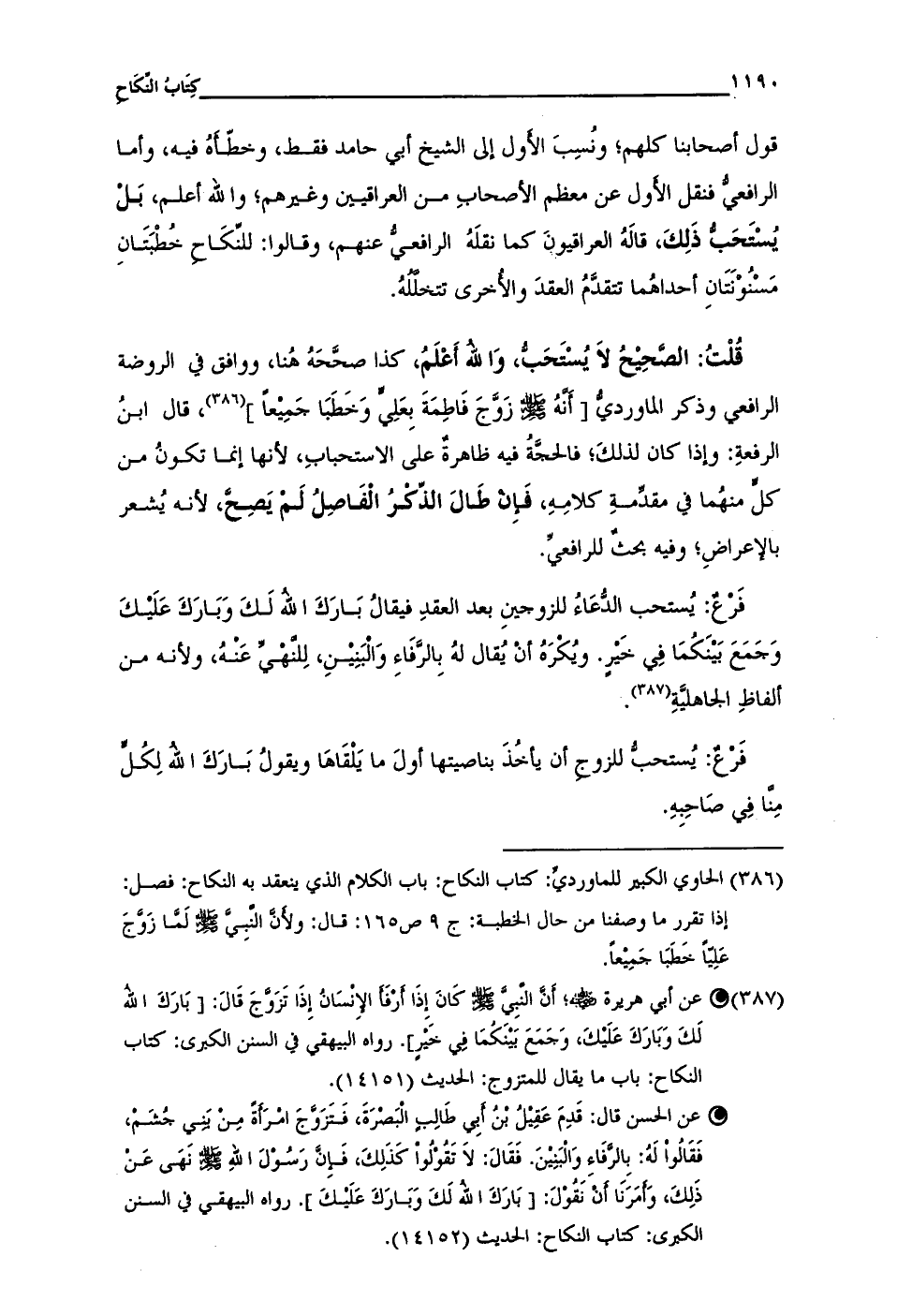 (¬386) الحاوي الكبير للماورديِّ: كتاب النكاح: باب الكلام الذى ينعقد به النكاح: فصل: اذا تقرر ما وصفنا من حال الخطبة: ج 9 ص 165: قال: ولأَنَّ النَّبِيَّ - صلى الله عليه وسلم - لَمَّا زَوَّجَ عَلِيًّا خَطَبَا جَمِيعاً.