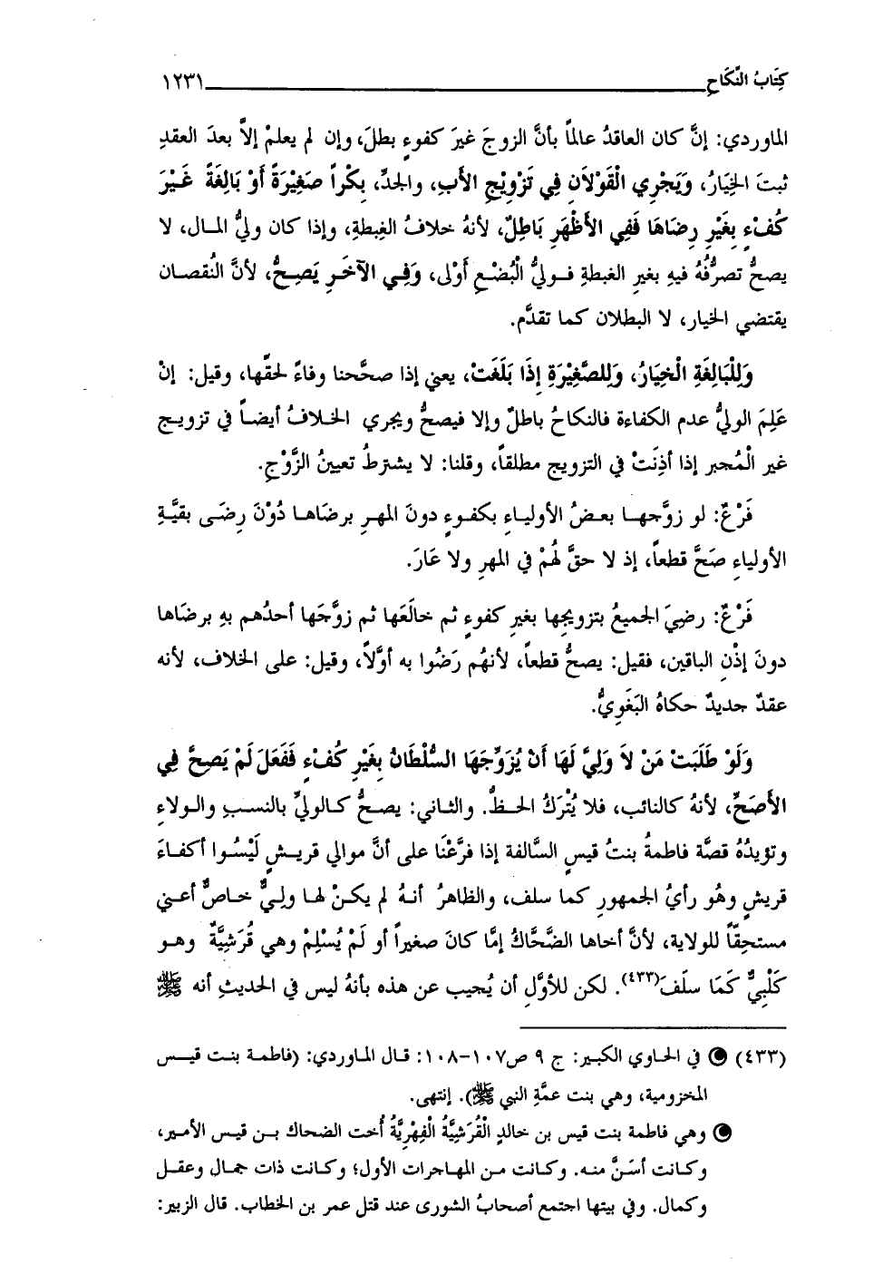 (¬433) • في الحاوى الكبير: ج 9 ص 107 - 108: قال الماوردى: (فاطمة بنت قيس المخزومية، وهي بنت عمَّةِ النبي - صلى الله عليه وسلم -). انتهى.