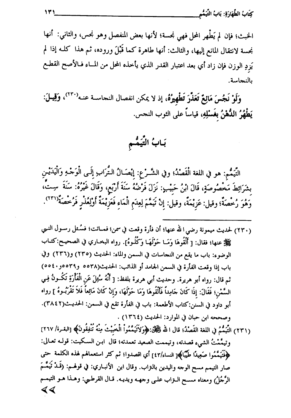 (¬231) التَّيَمُّمُ في اللغة القَصْدُ؛ قال الله عز وجلّ: {وَلَا تَيَمَّمُوا الْخَبِيثَ مِنْهُ تُنْفِقُون} [البقرة / 267]