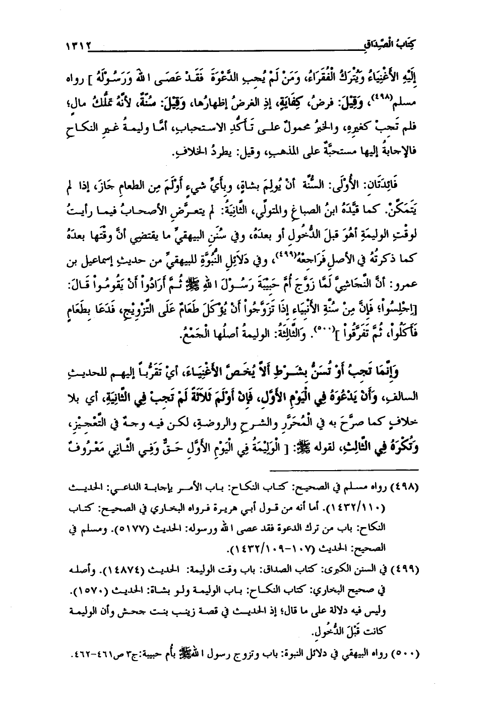 (¬498) رواه مسلم في الصحيح: كتاب النِّكَاح: باب الأمر بإجابة الداعي: الحديث (110/ 1432). أما أنَّه من قول أبي هريرة فرواه البخاري في الصحيح: كتاب النكاح: باب من ترك الدعوة فقد عصى الله ورسوله: الحديث (5177). ومسلم في الصحيح: الحديث (107 - 109/ 1432).
