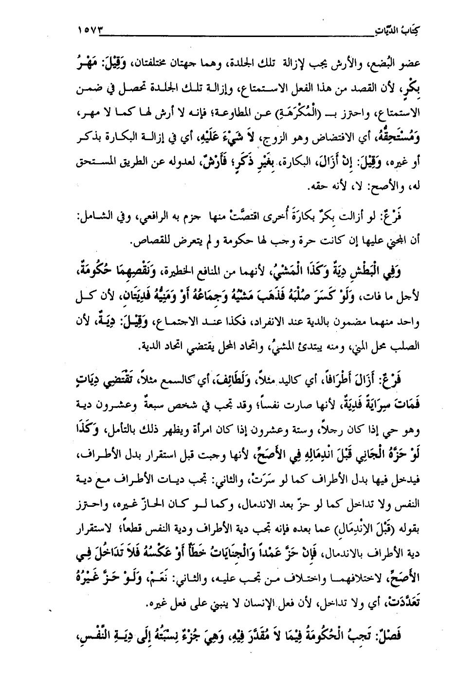 فَرْعٌ: أَزَالَ أَطرَافًا، أي كاليد مثلًا، وَلَطَائِفَ، أي كالسمع مثلًا، تقتضِي دِيَاتٍ فَمَاتَ سِرَايَةَ فَدِيَةٌ، لأنها صارت نفسًا؛ وقد تجب في شخص سبعةٌ وعشرون دية وهو حي إذا كان رجلًا، وستة وعشرون إذا كان امرأة ويظهر ذلك بالتأمل، وَكَذَا لَوْ حَزَّهُ الجاني قَبْلَ انْدِمَالِهِ في الأصَح، لأنها وجبت قبل استقرار بدل الأطراف، فيدخل فيها بدل الأطراف كما لو سَرَتْ، والثاني: تجب ديات الأطراف مع دية النفس ولا تداخل كما لو حزّ بعد الاندمال، وكما لو كان الحازّ غيره، واحترز بقوله (قَبْلَ الاِندِمَالِ) عما بعده فإنه تجب دية الأطراف ودية النفس قطعًا؛ لاستقرار دية الأطراف بالاندمال، فَإنْ حَزَّ عمدًا وَالجنايَاتُ خَطأ أَوْ عَكْسُهُ فَلَا تَدَاخُلَ فِي الأصَحِّ، لاختلافهما واختلاف من تجب عليه، والثاني: نَعَمْ، وَلَوْ حَزَّ غَيْرُهُ تَعَدَّدَتْ، أي ولا تداخل، لأن فعل الإنسان لا ينبني على فعل غيره.