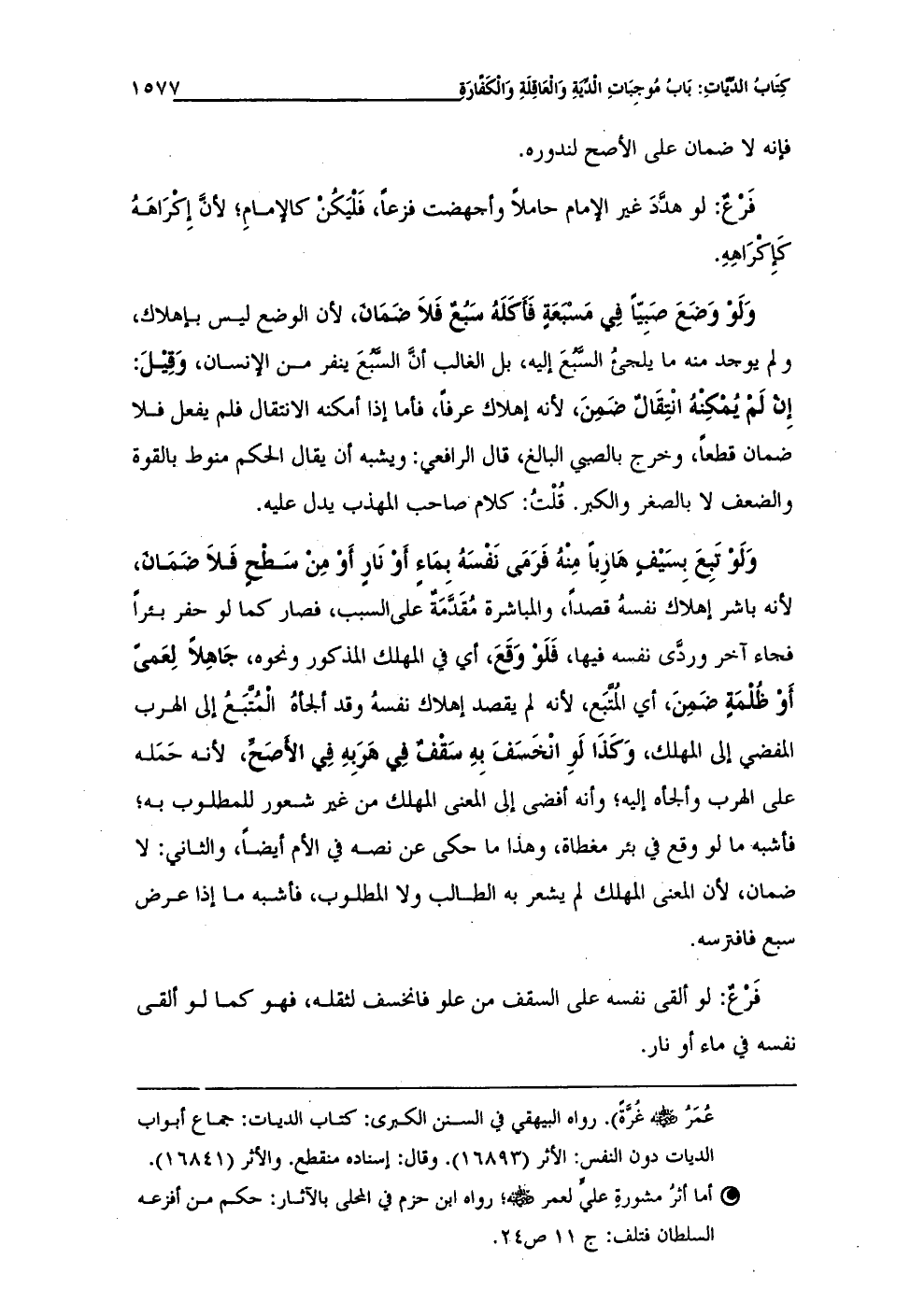 • أما أثرُ مشورةِ علي لعمر - رضي الله عنه -؛ رواه ابن حزم في المحلى بالآثار: حكم من أفزعه السلطان فتلف: ج 11 ص 24.