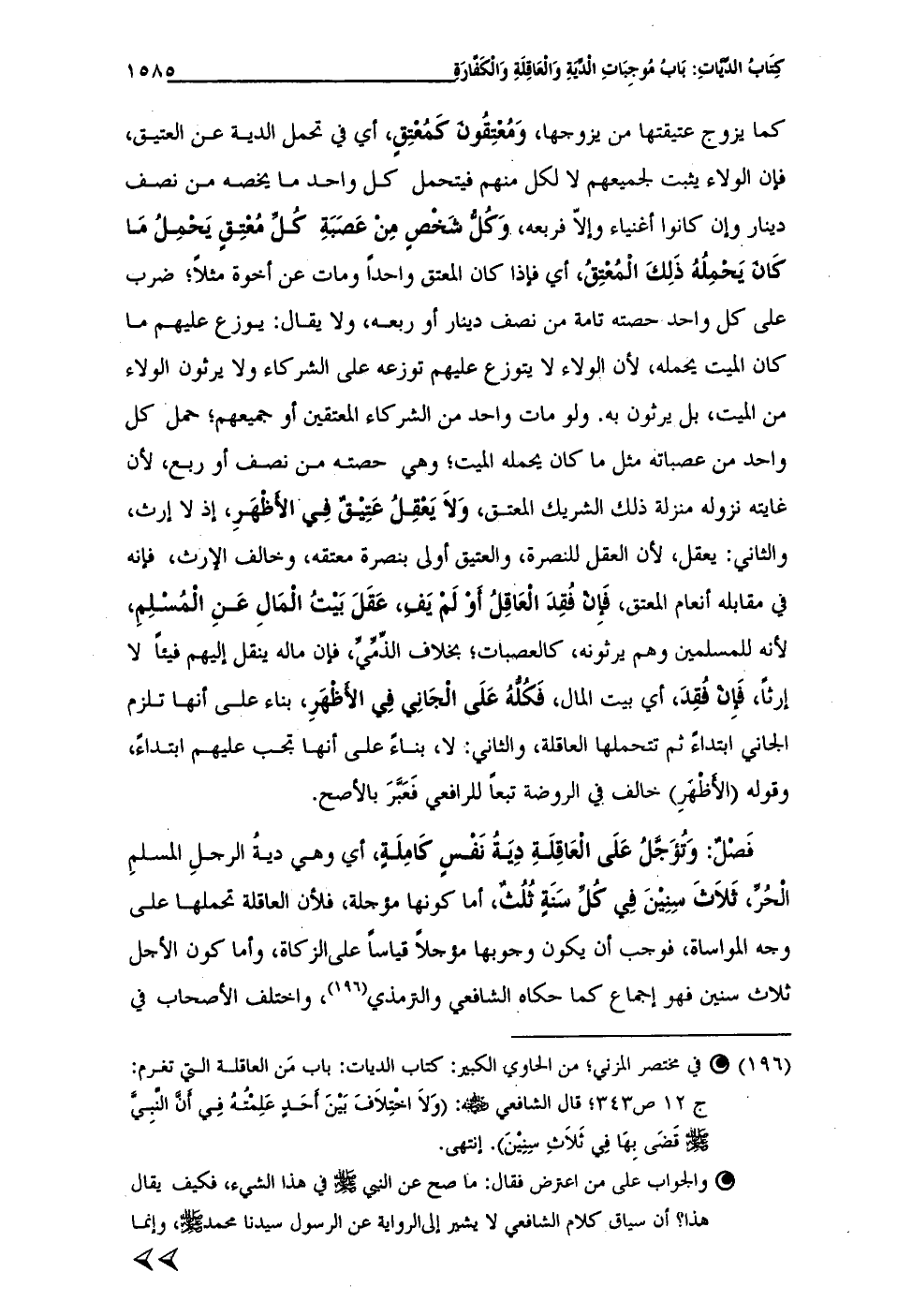 (¬196) • في مختصر المزني؛ من الحاوي الكبير: كتاب الديات: باب مَن العاقلة التي تغرم: ج 12 ص 343؛ قال الشَّافعي - رضي الله عنه -: (وَلَا اخْتِلَافَ بَينَ أحَد عَلِمتُهُ في أن النَّبيُّ - صلى الله عليه وسلم - قضَى بِهَا في ثَلَاثِ سنِيْنَ). انتهى.
