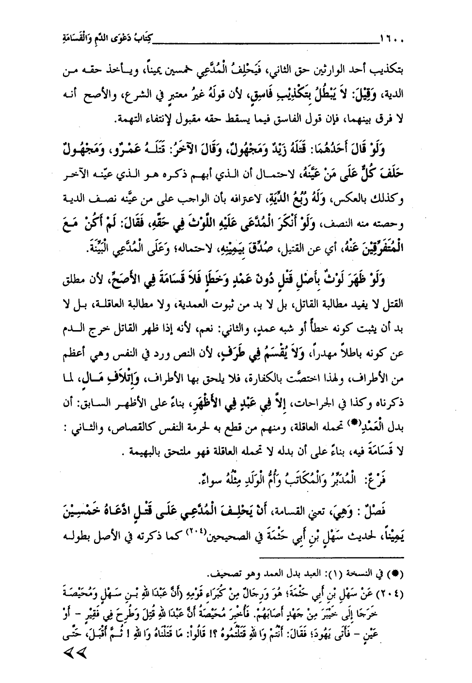فَصْلٌ: وَهِيَ، تعني القسامة، أَنْ يَحْلِفَ الْمُدَّعِي عَلَى قَتْل ادَّعَاهُ خَمْسِيْنَ يَمِيْنًا، لحديث سَهْلٍ بْنِ أبِي حَثْمَةَ في الصحيحين (¬204) كما ذكرته في الأصل بطوله