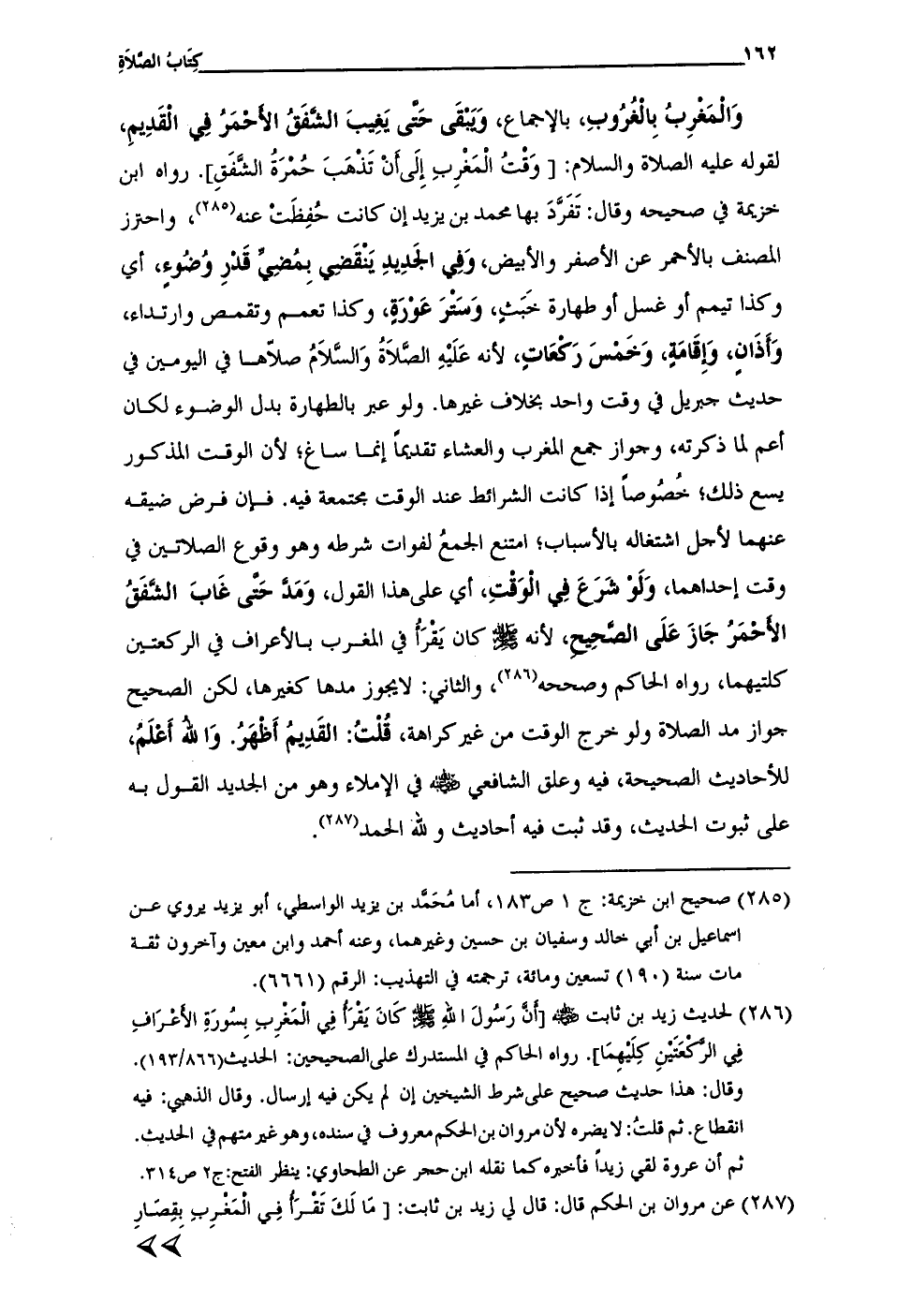 (¬286) لحديث زيد بن ثابت - رضي الله عنه -[أَنَّ رَسُولَ اللهِ - صلى الله عليه وسلم - كَانَ يَقْرَأُ فِي الْمَغْرِبِ بِسُورَةِ الأَعْرَافِ فِي الرَّكْعَتَيْنِ كِلَيْهِمَا]. رواه الحاكم في المستدرك على الصحيحين: الحديَث (866/ 193).