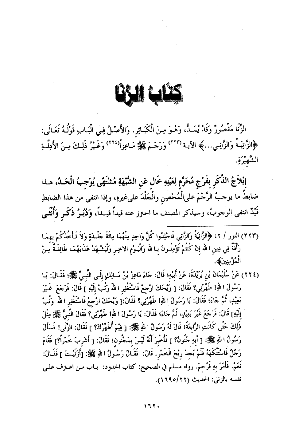 (¬223) النور / 2: {الزَّانِيَةُ وَالزَّانِي فَاجْلِدُوا كُلَّ وَاحِدٍ مِنْهُمَا مِائَةَ جَلْدَةٍ وَلَا تَأْخُذْكُمْ بِهِمَا رَأْفَةٌ فِي دِينِ اللَّهِ إِنْ كُنْتُمْ تُؤْمِنُونَ بِاللَّهِ وَالْيَوْمِ الْآخِرِ وَلْيَشْهَدْ عَذَابَهُمَا طَائِفَةٌ مِنَ الْمُؤْمِنِينَ}.