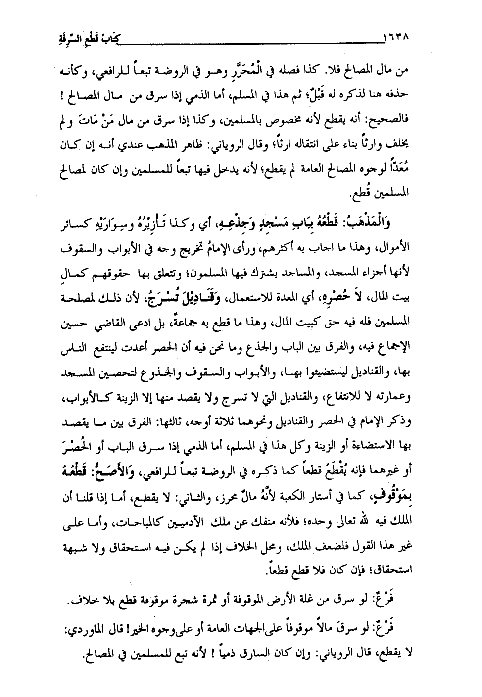 فَرْعٌ: لو سرقَ مالًا موقوفًا على الجهات العامة أو على وجوه الخير! قال الماوردي: لا يقطع، قال الروياني: وإن كان السارق ذميًا! لأنه تبع للمسلمين في المصالح.