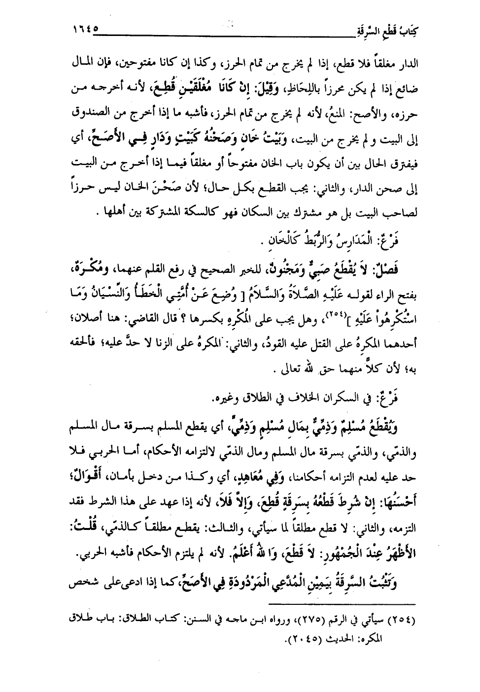 فَصْلٌ: لاَ يُقْطَعُ صَبِيٌّ وَمَجْنُونٌ، للخبر الصحيح في رفع القلم عنهما، ومُكْرَهٌ، بفتح الراء لقوله عَلَيْهِ الصَّلاَةُ وَالسَّلاَمُ [وُضِعَ عَنْ أُمَّتِي الْخَطَأُ وَالنَّسْيَانُ وَمَا اسْتُكْرِهُواْ عَلَيْهِ] (¬254)، وهل يجب على المُكْرِهِ بكسرها؟ قال القاضي: هنا أصلان؛ أحدهما المكرِهُ على القتل عليه القودُ، والثاني: المكرهُ على الزنا لا حدَّ عليه؛ فألحقه به؛ لأن كلاًّ منهما حق لله تعالى.