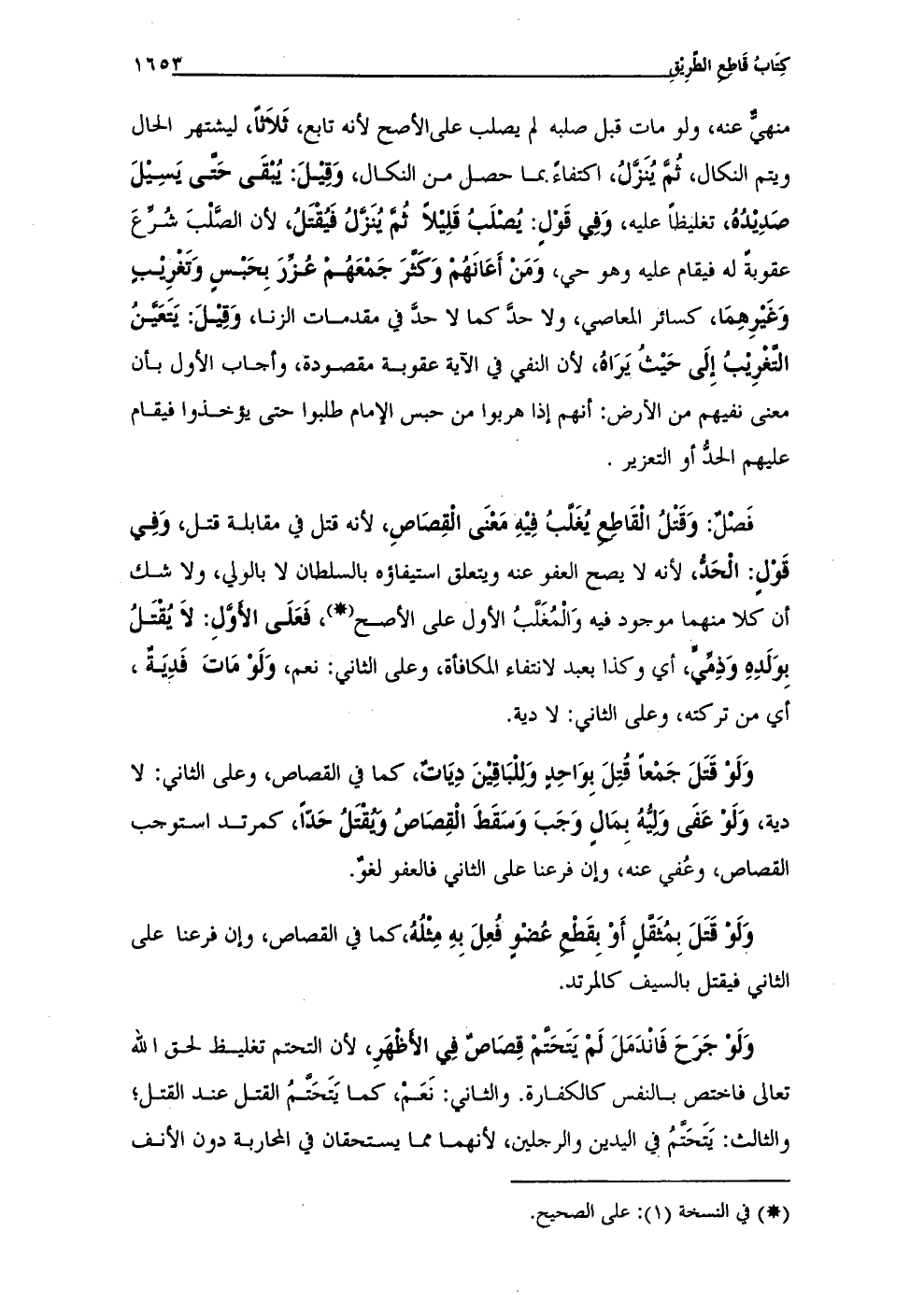 منهيٌّ عنه، ولو مات قبل صلبه لم يصلب على الأصح لأنه تابع، ثَلاَثًا، ليشتهر الحال ويتم النكال، ثُمَّ يُنَزَّلُ، اكتفاءً بما حصل من النكال، وَقِيْلَ: يُبْقَى حَتَّى يَسِيْلَ صَدِيدُهُ، تغليظًا عليه، وَفِي قَوْلٍ: يُصلَبُ قَلِيْلاً ثُمَّ يُنَزَّلُ فَيُقْتَلُ، لأن الصَّلْبَ شُرِّعَ عقوبةٌ له فيقام عليه وهو حي، وَمَنْ أَعَانَهُم وَكَثَّرَ جَمعَهُمْ عُزِّرَ بِحَبْسٍ وَتَغْرِيْبٍ وَغَيْرِهِمَا، كسائر المعاصي، ولا حدَّ كما لا حدَّ في مقدمات الزنا، وَقِيْلَ: يَتَعَيَّنُ التَّغْرِيْبُ إِلَى حَيْثُ يَرَاهُ، لأن النفي في الآية عقوبة مقصودة، وأجاب الأول بأن معنى نفيهم من الأرض: أنهم إذا هربوا من حبس الإمام طلبوا حتى يؤخذوا فيقام عليهم الحدُّ أو التعزير.