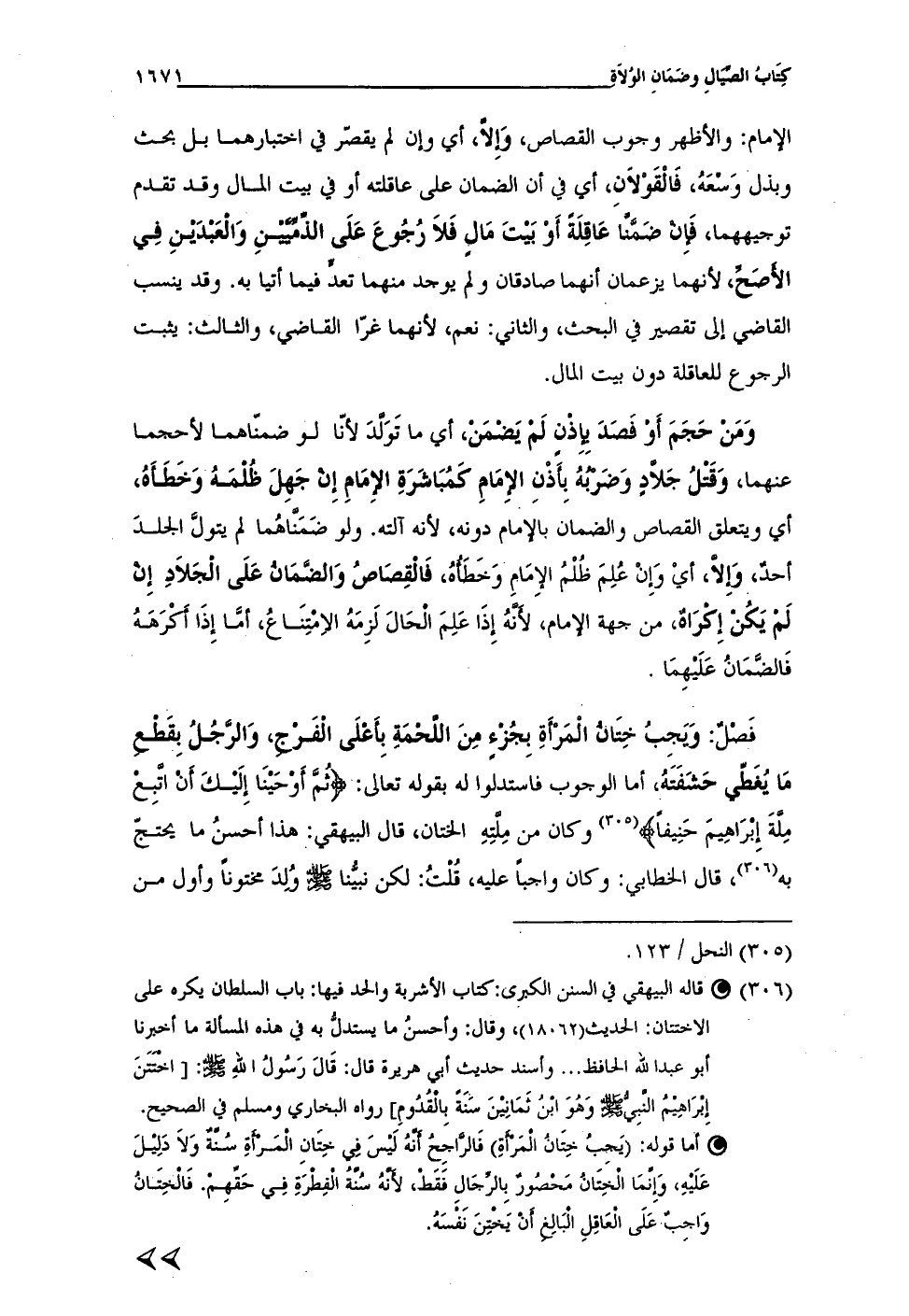 • أما قوله: (يَجِبُ خِتَانُ الْمَرْأَةِ) فَالرَّاجِحُ أَنَّهُ لَيْسَ فِي خِتَانِ الْمَرْأَةِ سُنَّةٌ وَلاَ دَلِيْلَ عَلَيْهِ، وَإِنَّمَا الْخِتَانُ مَحْصُورٌ بِالرِّجَالِ فَقَطْ، لأَنَّهُ سُنَّةُ الْفِطْرَةِ في حَقَّهِمْ. فَالْخِتَانُ وَاجِبٌ عَلَى الْعَاقِلِ الْبَالِغِ أَنْ يَخْتِنَ نَفسَهُ. =
