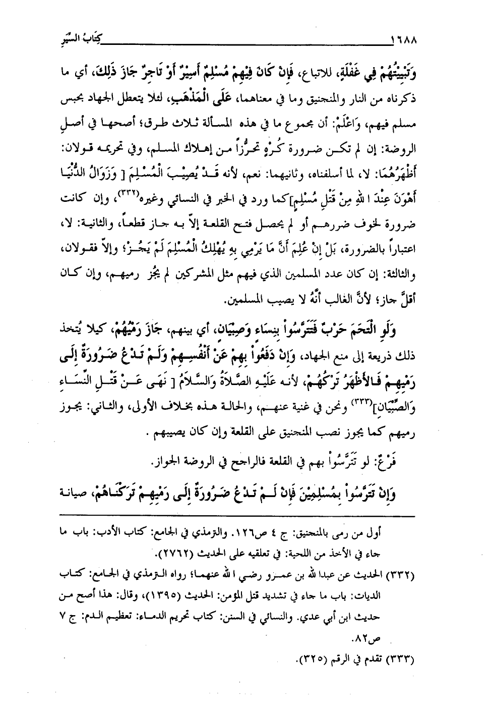 وَإِنْ تَتَرَّسُواْ بِمُسْلِمِيْنَ فَإِنْ لَمْ تَدْعُ ضَرُورَةٌ إِلَى رَمْيِهِمْ تَرَكْنَاهُمْ، صيانة