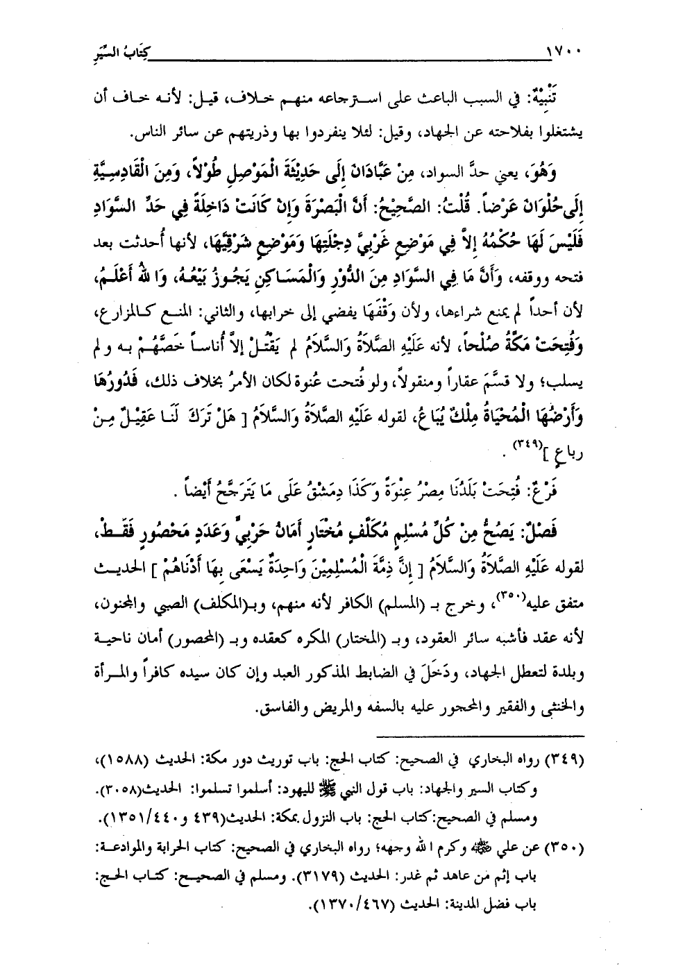(¬349) رواه البخاري في الصحيح: كتاب الحج: باب توريث دور مكة: الحديث (1588)، وكتاب السير والجهاد: باب قول النبي - صلى الله عليه وسلم - لليهود: أسلموا تسلموا: الحديث (3058). ومسلم في الصحيح: كتاب الحج: باب النزول بمكة: الحديث (439 و 440/ 1351).