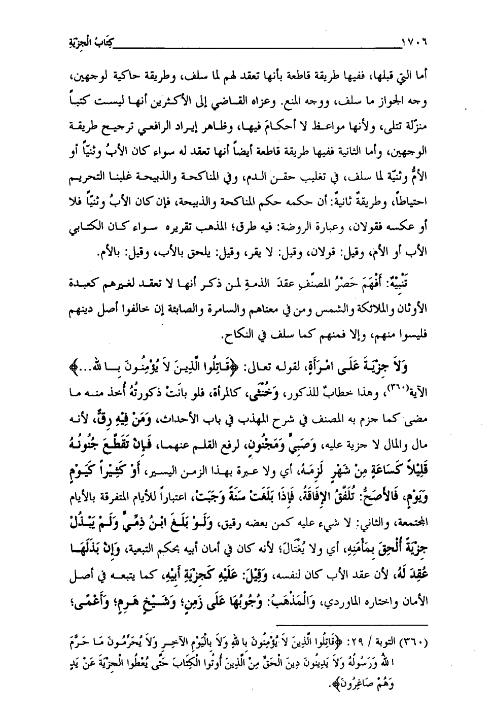 (¬360) التوبة / 29: {قَاتِلُوا الَّذِينَ لَا يُؤْمِنُونَ بِاللَّهِ وَلَا بِالْيَوْمِ الْآخِرِ وَلَا يُحَرِّمُونَ مَا حَرَّمَ اللَّهُ وَرَسُولُهُ وَلَا يَدِينُونَ دِينَ الْحَقِّ مِنَ الَّذِينَ أُوتُوا الْكِتَابَ حَتَّى يُعْطُوا الْجِزْيَةَ عَنْ يَدٍ وَهُمْ صَاغِرُونَ}.