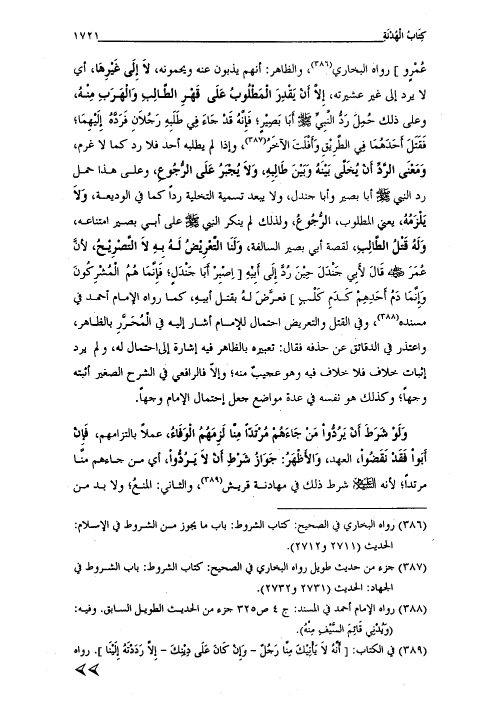 (¬389) في الكتاب: [أَنَّهُ لاَ يَأْتِيْكَ مِنَّا رَجُلٌ - وإِن كَانَ عَلَى دِيْنِكَ - إِلَّا رَدَدْتَهُ إِلَيْنَا]. رواه =