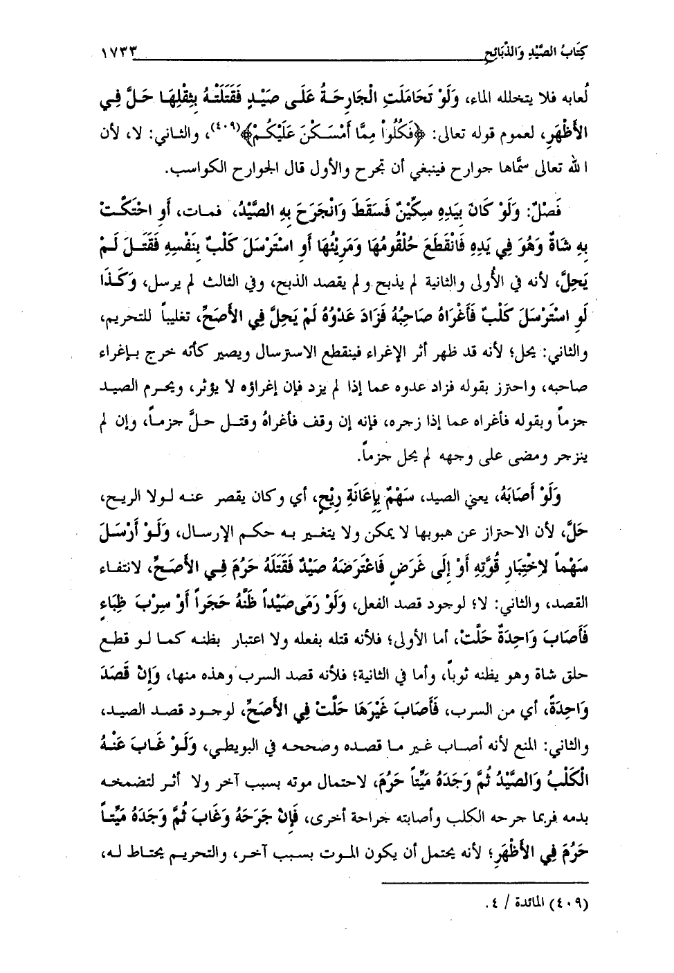 لُعابه فلا يتخلله الماء، وَلَوْ تَحَامَلَتِ الْجَارِحَةُ عَلَى صَيْدٍ فَقَتَلَتْهُ بِثِقْلِهَا حَلَّ فِي الأَظْهَرِ، لعموم قوله تعالى: {فَكُلُوا مِمَّا أَمْسَكْنَ عَلَيْكُمْ} (¬409)، والثاني: لا، لأن الله تعالى سمَّاها جوارح فينبغي أن تجرح والأول قال الجوارح الكواسب.