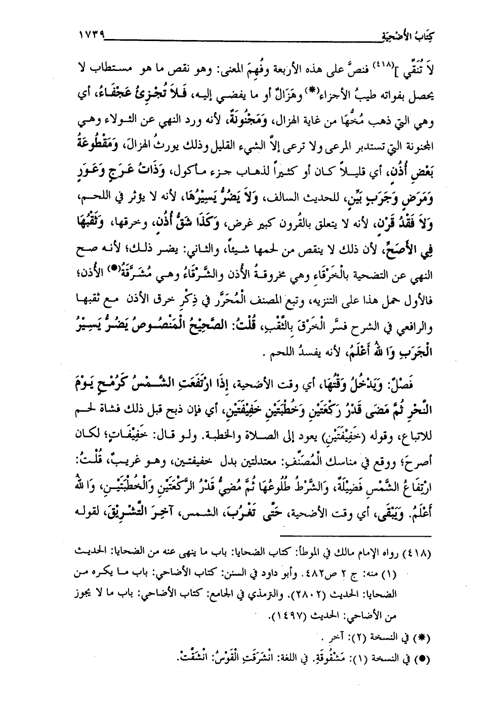 (¬418) رواه الإمام مالك فِي الموطأ: كتاب الضحايا: باب ما ينهى عنه من الضحايا: الحديث (1) منه: ج 2 ص 482. وأبو داود فِي السنن: كتاب الأضاحي: باب ما يكره من الضحايا: الحديث (2802). والترمذي فِي الجامع: كتاب الأضاحي: باب ما لا يجوز من الأضاحي: الحديث (1497).