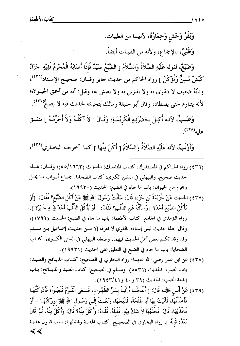(¬436) رواه الحاكم فِي المستدرك: كتاب المناسك: الحديث (1663/ 55)، وقال: هذا حديث صحيح. والبيهقي فِي السنن الكبرى: كتاب الضحايا: جماع أبواب ما يحل ويحرم من الحيوان: باب ما جاء فِي الضبع: الحديث (19930).