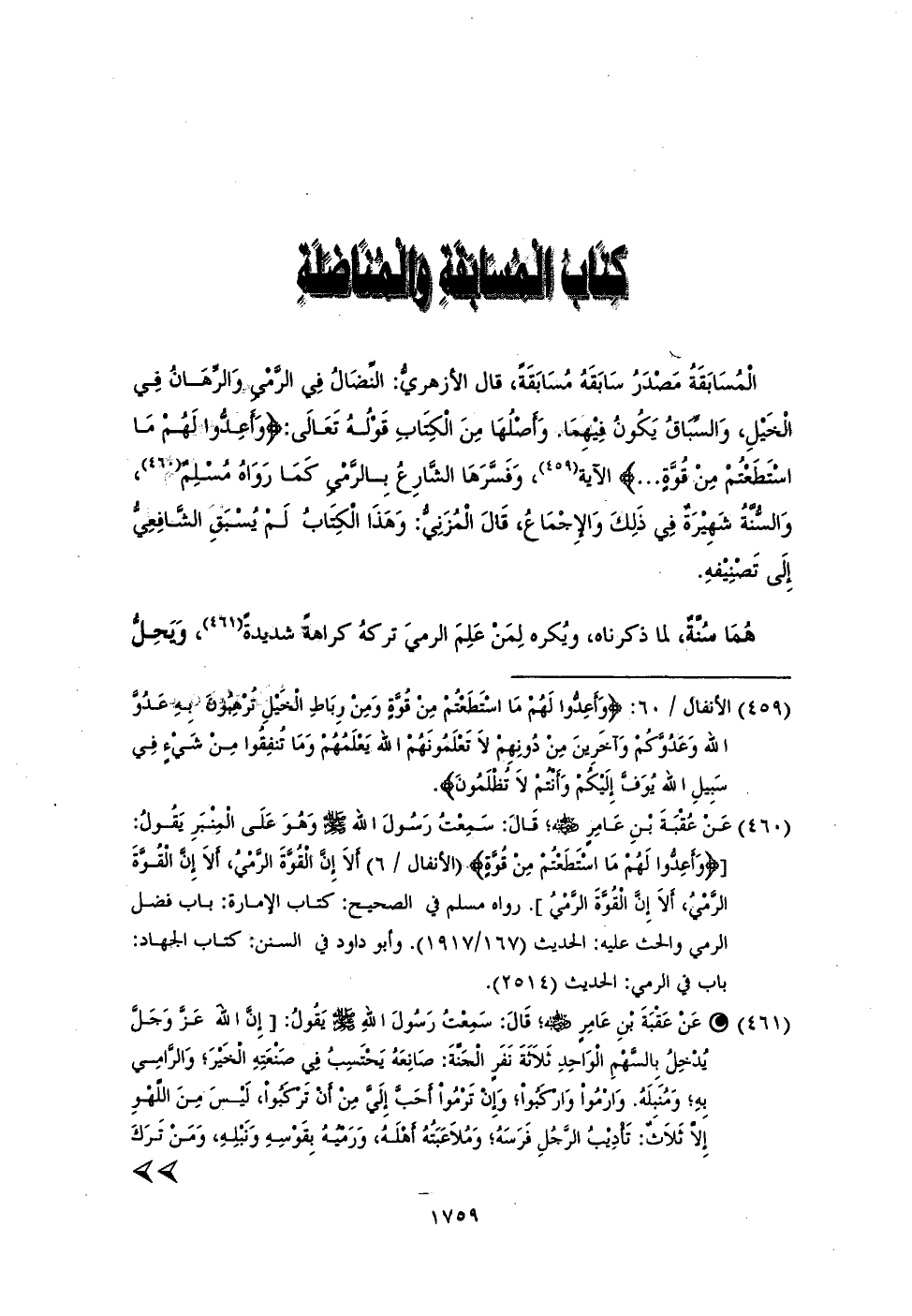 كِتَابُ الْمُسَابَقَةِ والْمُنَاضَلَةِ