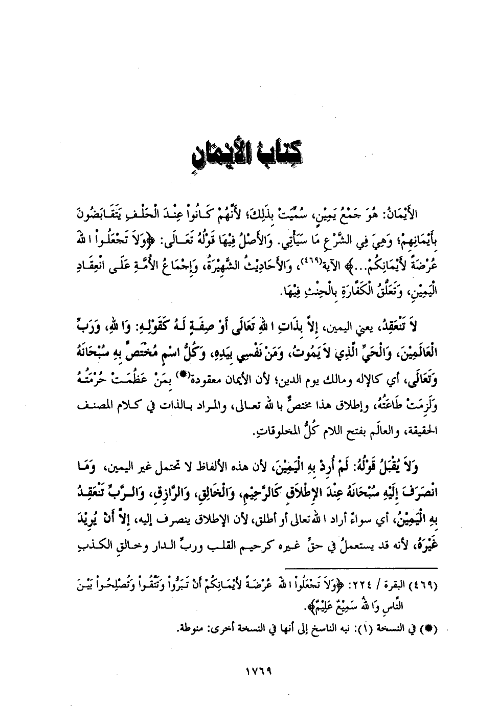 الأَيْمَانُ: هُوَ جَمْعُ يَمِيْنٍ، سُمَّيَتْ بِذَلِكَ؛ لأَنَّهُمْ كَانُواْ عِنْدَ الْحَلْفِ يَتَقَابَضُونَ بِأَيْمَانِهِمْ؛ وَهِيَ فِي الشَّرْعِ مَا سَيَأْتِي. وَالأَصْلُ فِيهَا قَوْلُهُ تَعَالَى: {وَلَا تَجْعَلُوا اللَّهَ عُرْضَةً لِأَيْمَانِكُمْ ... } الآية (¬469)، وَالأَحَادِيْثُ الشَّهِيرَةُ، وَإِجْمَاعُ الأُمَّةِ عَلَى انْعِقَادِ الْيَمِيْنِ، وَتَعَلُّقُ الْكَفَّارَةِ بِالْحِنْثِ فِيْهَا.