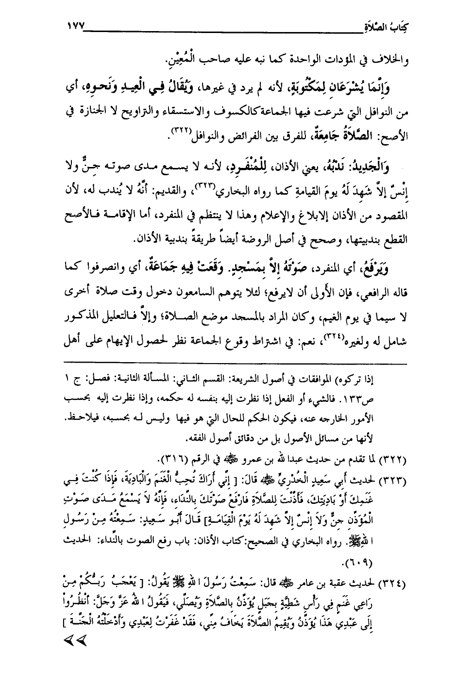(¬323) لحديث أَبِي سَعِيدٍ الْخُدْرِيِّ - رضي الله عنه - قَالَ: [إِنِّي أرَاكَ تُحِبُّ الْغَنَمَ وَالْبَادِيَةَ، فَإِذَا كُنْتَ فِي غَنَمِكَ أَوْ بَادِيَتِكَ، فَأَذَّنْتَ لِلصَّلاَةِ فَارْفَعْ صَوْتَكَ بِالنِّدَاءِ، فَإِنَّهُ لاَ يَسْمَعُ مَدَى صَوْتِ الْمُؤَذِّنِ جِنٌّ وَلاَ إِنْسٌ إِلاَّ شَهِدَ لَهُ يَوْمَ الْقِيَامَةِ] قَالَ أَبُو سَعِيدٍ: سَمِعْتُهُ مِنْ رَسُولِ الله - صلى الله عليه وسلم -. رواه البخاري في الصحيح: كتاب الأذان: باب رفع الصوت بالنِّداء: الحديث (609).