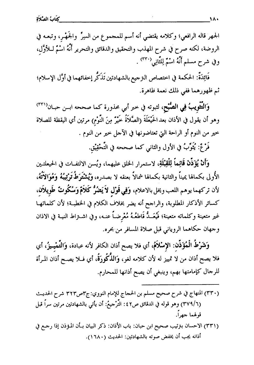 (¬330) المنهاج في شرح صحيح مسلم بن الححاج للإمام النووي: ج 3 ص 323 شرح الحديث (6/ 379) وهو قوله في الدقائق ص 42؛ التَّرْجيعُ: أن يأتي بالشهادتين مرتين سرًا قبل قولهما جهرًا.