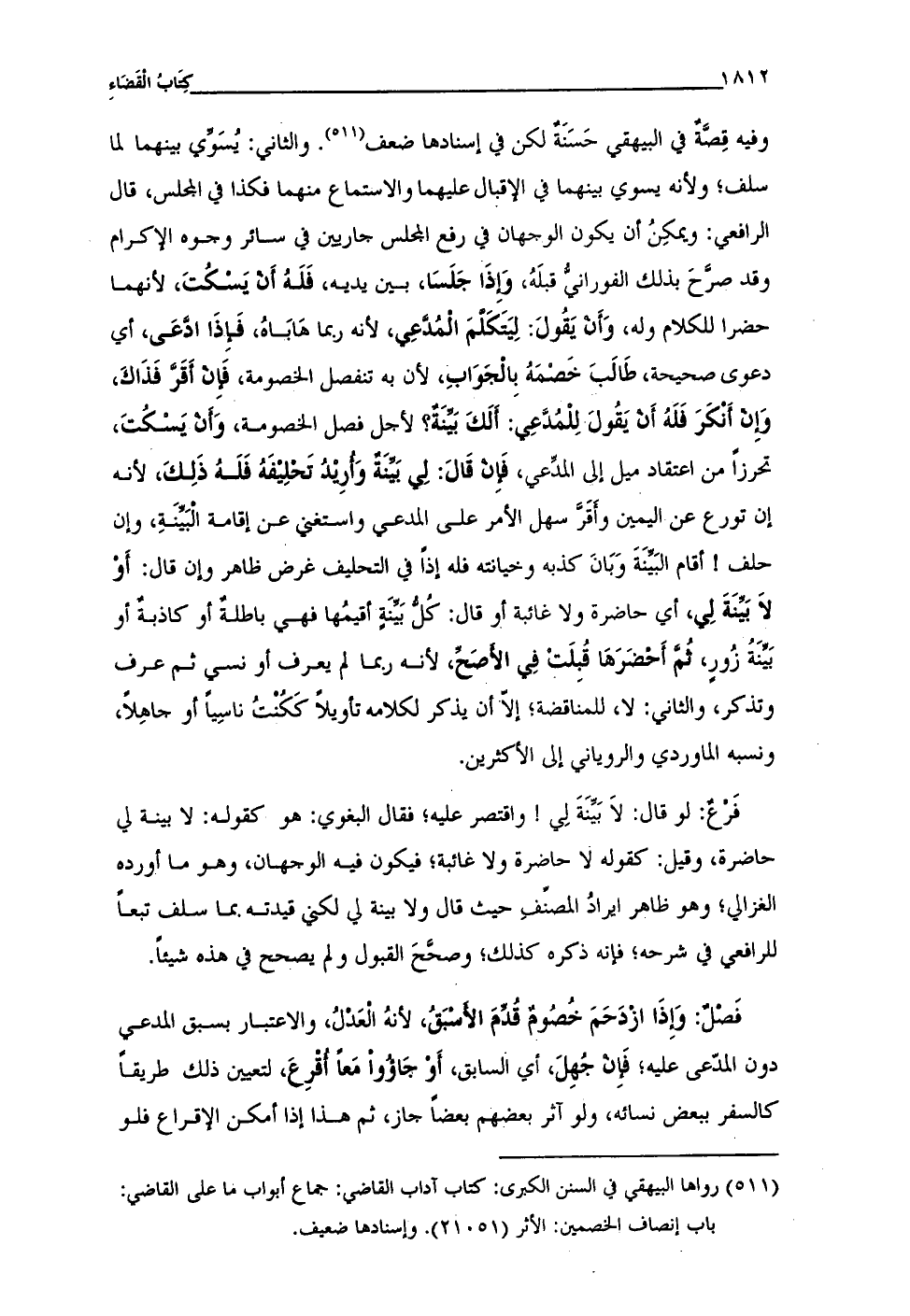 (¬511) رواها البيهقي في السنن الكبرى: كتاب آداب القاضي: جماع أبواب ما على القاضي: باب إنصاف الخصمين: الأثر (21051). وإسنادها ضعيف.