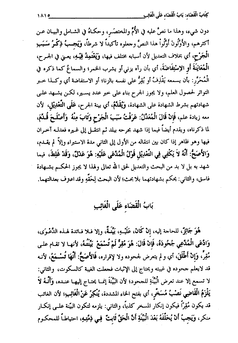 دون شيء، وهذا ما نصَّ عليه في الأُمِّ والمختصَرِ، وحكاهُ في الشامل والبيان عن أكثرهم، والأَوَّلُونَ أَوَّلُواْ هذا النصَّ وجعلوه تأكيدًا لا شرطًا، وَيَجِبُ ذِكْرُ سَبَبِ الْجَرْحِ، أي بخلاف التعديل لأن أسبابه مختلف فيها، وَيَعْتَمِدُ فِيْهِ، يعني في الجرح، المُعَايَنَةَ أَوِ الِاسْتِفَاضَةَ، أي بأن رآه يزني أو يشرب الخمر؛ والسماعُ كما ذكره في الْمُحَرَّرِ: بأن يسمعه يَقْذِفُ أو يُقِرُّ على نفسه بالزنا؛ أو الاستفاضة أي وكذا خبر التواتر لحصول العلم، ولا يجوز الجرح بناء على خبر عدد يسير، لكن يشهد على شهادتهم بشرط الشهادة على الشهادة، وَيُقَدَّمُ، أي بينة الجرح، عَلَى التَّعْدِيْلِ، لأن معه زيادة علم، فَإِنْ قَالَ الْمُعَدِّلُ: عَرَفْتُ سَبَبَ الْجَرْحِ وَتَابَ مِنْهُ وَأصْلَحَ قُدِّمَ، لما ذكرناه، ويقدم أيضًا فيما إذا شهد بجرحه ببلد ثم انتقل إلى غيره فعدله آخران فيها وهو ظاهر إذا كان بين انتقاله من الأول إلى الثاني مدة الاستبراء وإلاّ لم يقدم، وَالأَصَحُّ أَنَّهُ لاَ يَكفِي فِي التَّعْدِيْل قَوْلُ الْمُدَّعَى عَلَيْهِ: هُوَ عَدْلٌ، وَقَدْ غَلِطَ، فيما شهد به بل لا بد من البحث والتعديل لحق الله تعالى ولهذا لا يجوز الحكم بشهادة فاسق، والثاني: يحكم بشهادتهما بلا بحث؛ لأن البحث لِحَقِّهِ وقد اعترف بعدالتهما.