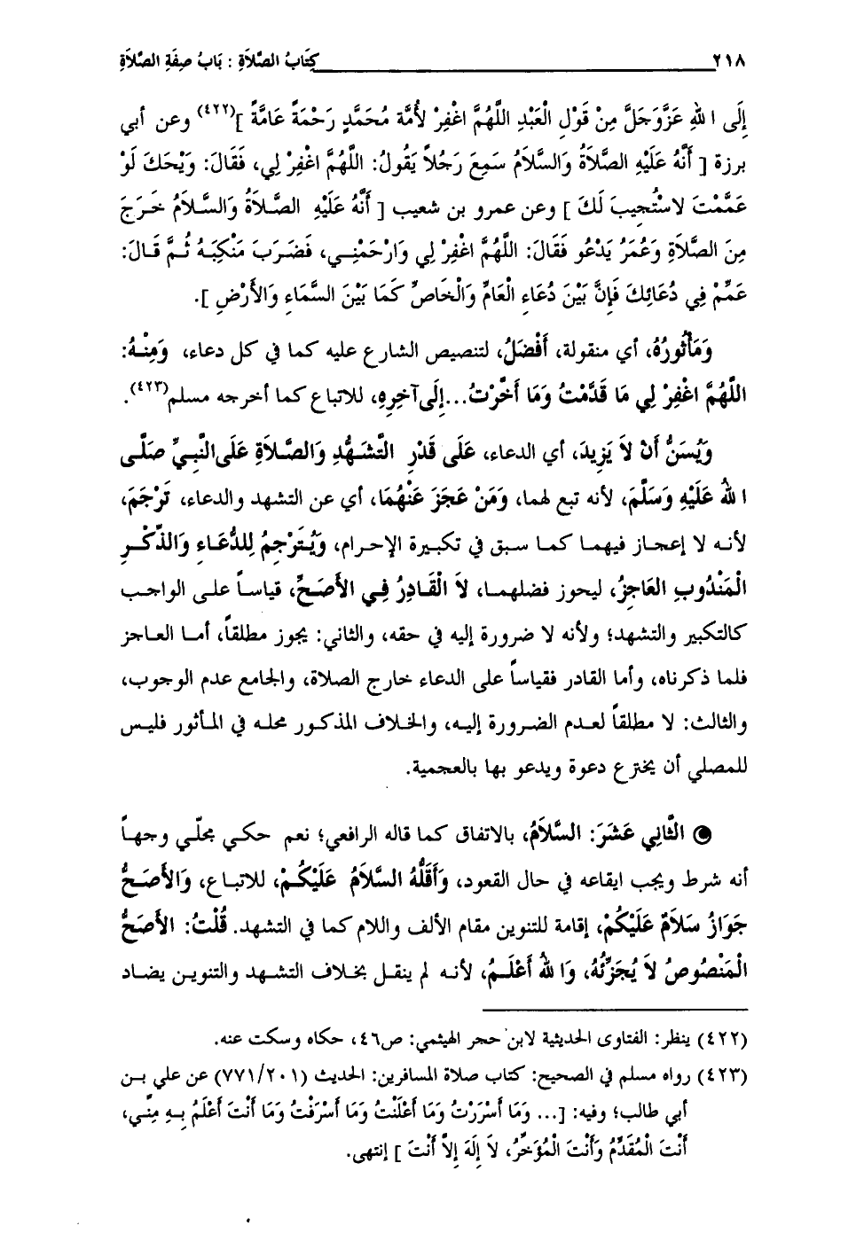 (¬422) ينظر: الفتاوى الحديثية لابن حجر الهيثمي: ص 46، حكاه وسكت عنه.