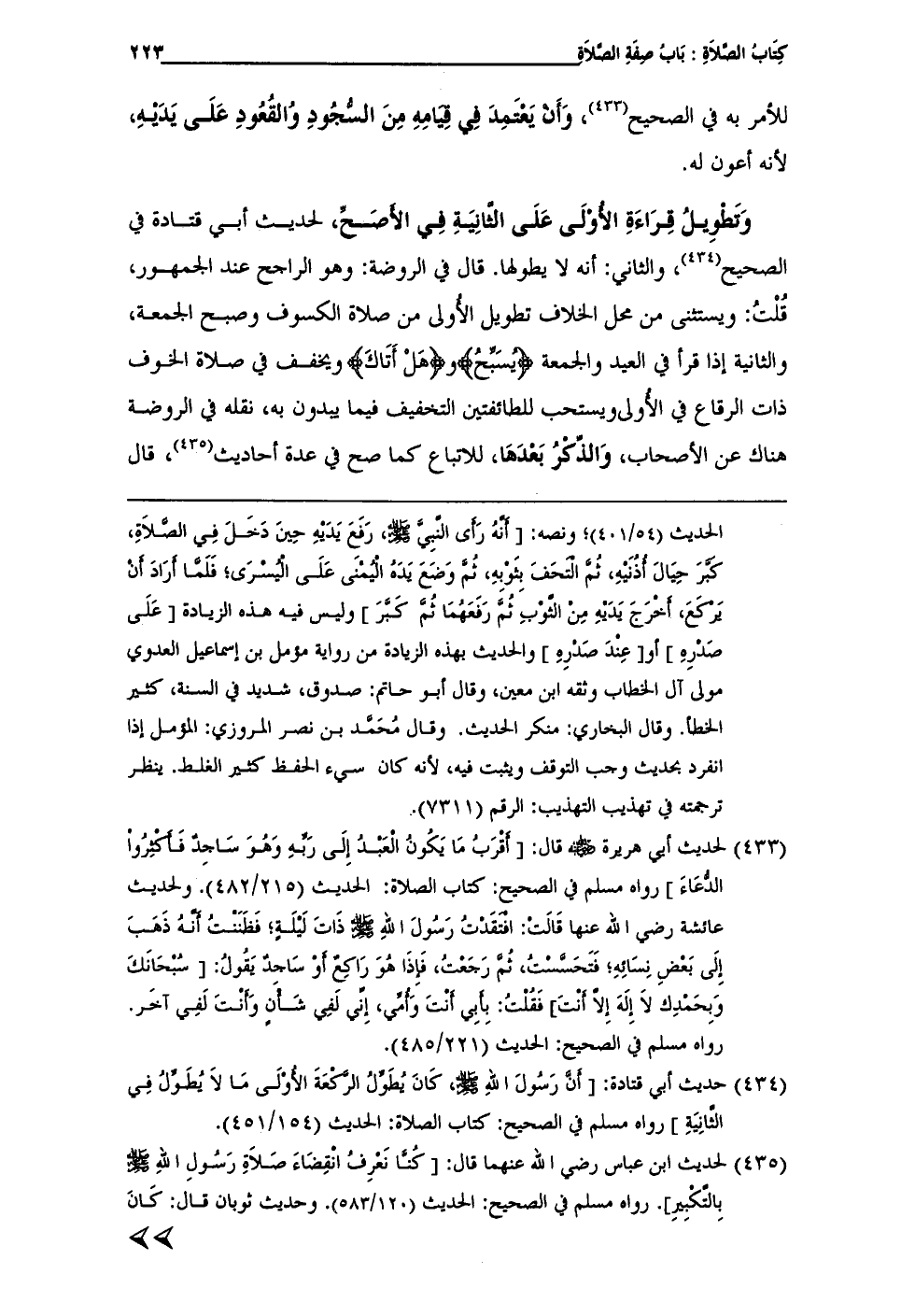 (¬434) حديث أبي قتادة: [أَنَّ رَسُولَ اللهِ - صلى الله عليه وسلم -، كَانَ يُطَوَّلُ الرَّكْعَةَ الأُوْلَى مَا لاَ يُطَوِّلُ فِي الثَّانِيَةِ] رواه مسلم في الصحيح: كتاب الصلاة: الحديث (154/ 451).