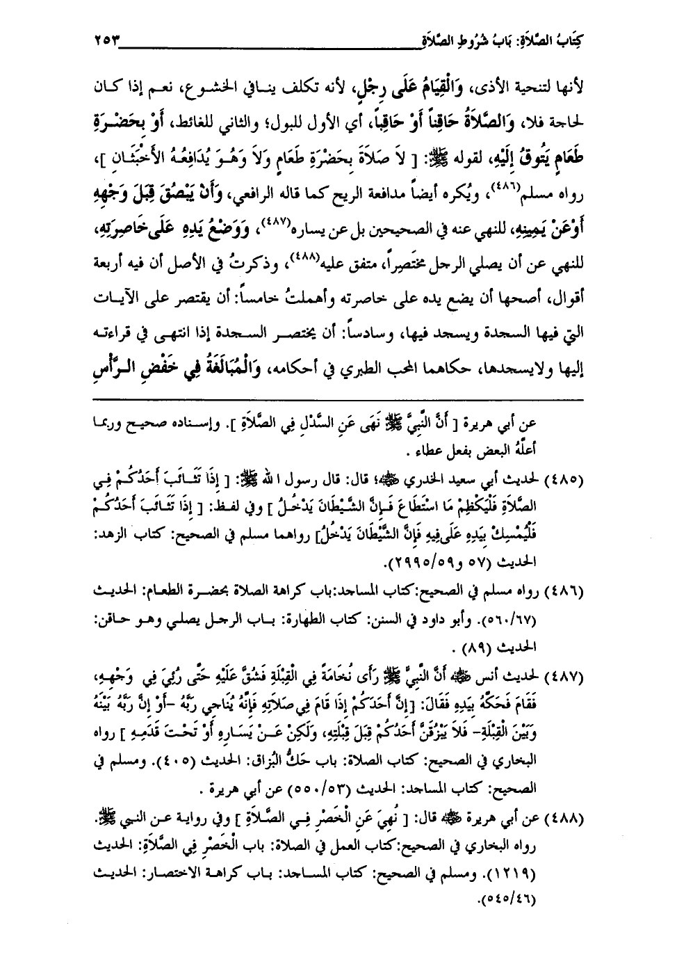 (¬486) رواه مسلم في الصحيح: كتاب المساجد: باب كراهة الصلاة بحضرة الطعام: الحديث (67/ 560). وأبو داود في السنن: كتاب الطهارة: باب الرجل يصلي وهو حاقن: الحديث (89).