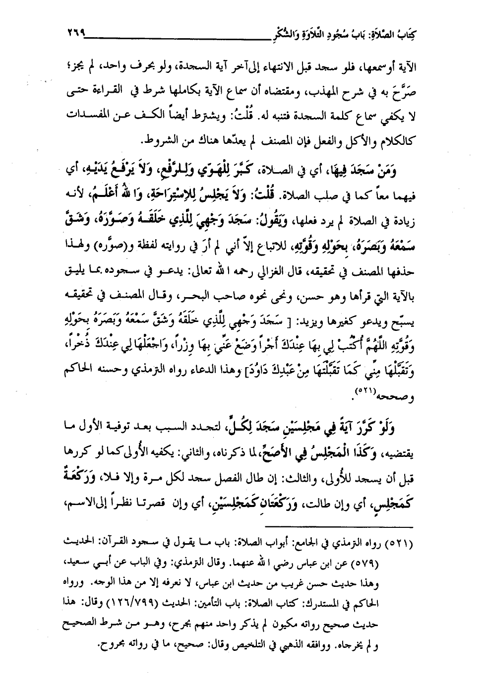 (¬521) رواه التِّرْمِذِيّ في الجامع: أبواب الصلاة: باب ما يقول في سجود القرآن: الحديث (579) عن ابن عباس رضي الله عنهما. وقال التِّرْمِذِيّ: وفي الباب عن أبي سعيد، وهذا حديث حسن غريب من حديث ابن عباس، لا نعرف إلَّا من هذا الوجه. ورواه الحاكم في المستدرك: كتاب الصلاة: باب التأمين: الحديث (799/ 126) وقال: هذا حديث صحيح رواته مكيون لم يذكر واحد منهم بجرح، وهو من شرط الصحيح ولم يخرجاه. ووافقه الذهبي في التلخيص وقال: صحيح، ما في رواته مجروح.