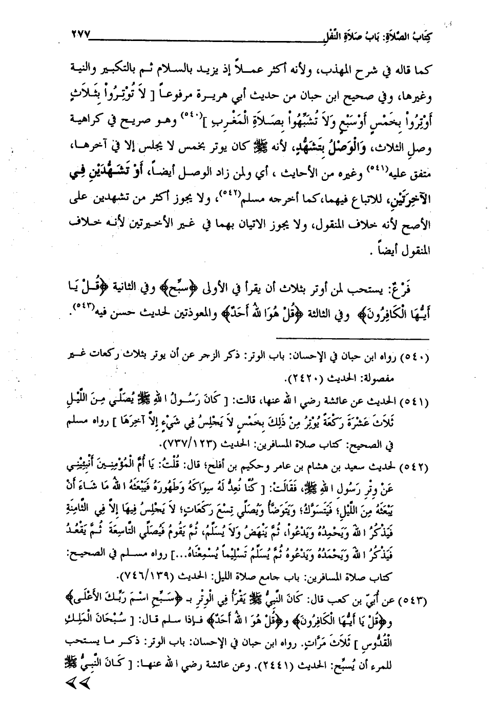 (¬540) رواه ابن حبان في الإحسان: باب الوتر: ذكر الزجر عن أن يوتر بثلاث ركعات غير مفصولة: الحديث (2420).