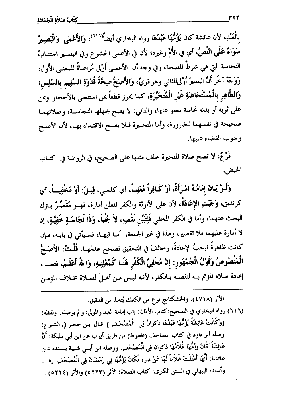 (¬616) رواه البخاري في الصحيح: كتاب الأذان: باب إمامة العبد والمولى؛ ولم يوصله. ولفظه: [وَكَانَتْ عَائِشَةُ يَؤُمَّهَا عَبْدُهَا ذكوانُ فِي الْمُصْحَفِ]، قال ابن حجر في الشرح: وصله أبو داود في كتاب المصاحف (مخطوط) من طريق أيوب عن ابن أبي مليكة: أَنَّ عَائِشَةَ كَانَ يَؤُمَّهَا غُلَامُهَا ذكوان فِي الْمُصْحَفِ. ووصله ابن أبي شيبة بسنده عن عائشة: أَنَّهَا أَعْتَقَتْ؛ غُلَامًا لَهَا عَنْ دبر، فَكَانَ يَؤُمُّهَا في رَمَضَانَ فِي الْمُصْحَفِ. إهـ.