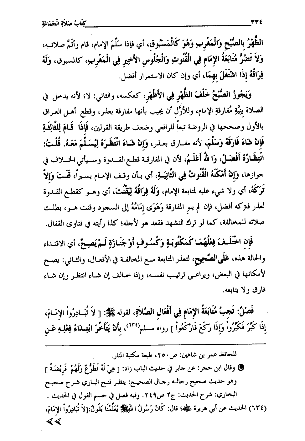 فَصْلٌ: تَجِبُ مُتَابَعَةُ الإِمَامِ فِي أَفْعَالِ الصَّلاَةِ، لقوله - صلى الله عليه وسلم -: [لاَ تُبَادِرُواْ الإِمَامَ،