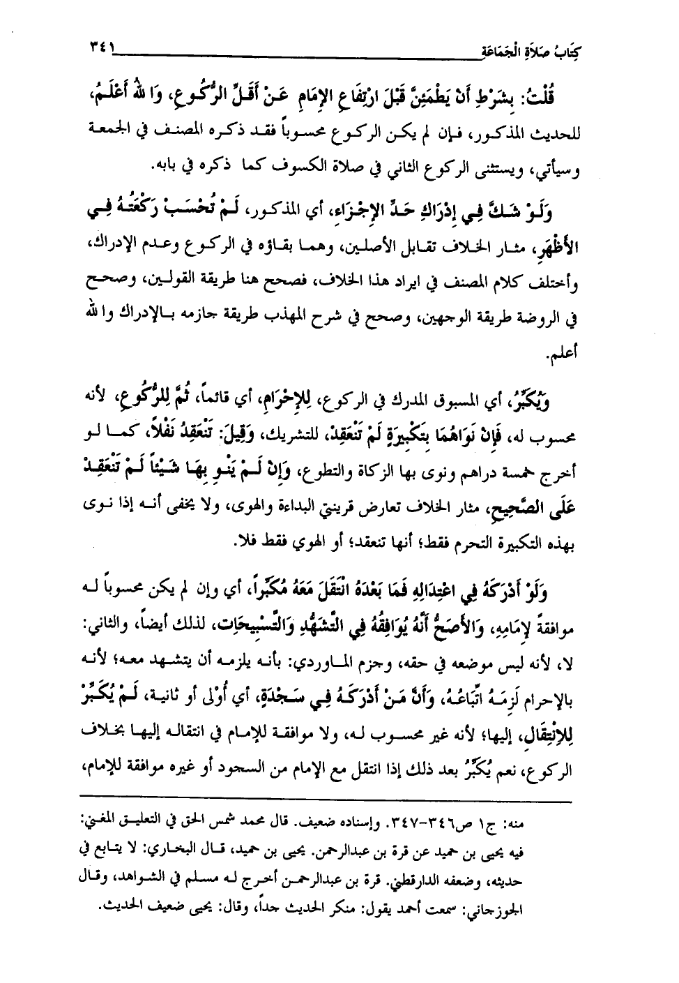 قُلْتُ: بِشَرْطِ أَنْ يَطْمَئِنَّ قَبْلَ ارْتِفَاعِ الإِمَامِ عَنْ أَقَلِّ الرُّكُوعِ، وَالله أَعْلَمُ، للحديث المذكور، فإن لم يكن الركوع محسوبًا فقد ذكره المصنف في الجمعة وسيأتي، ويستثنى الركوع الثاني في صلاة الكسوف كما ذكره في بابه.