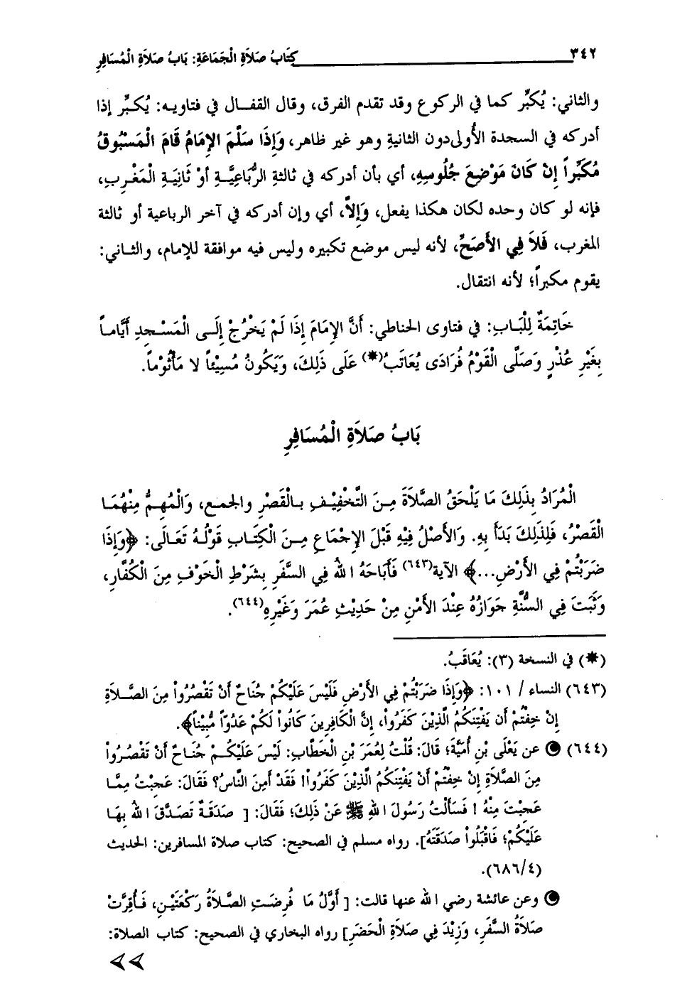 (¬643) النساء / 101: {وَإِذَا ضَرَبْتُمْ فِي الْأَرْضِ فَلَيْسَ عَلَيْكُمْ جُنَاحٌ أَنْ تَقْصُرُوا مِنَ الصَّلَاةِ إِنْ خِفْتُمْ أَنْ يَفْتِنَكُمُ الَّذِينَ كَفَرُوا إِنَّ الْكَافِرِينَ كَانُوا لَكُمْ عَدُوًّا مُبِينًا}.
