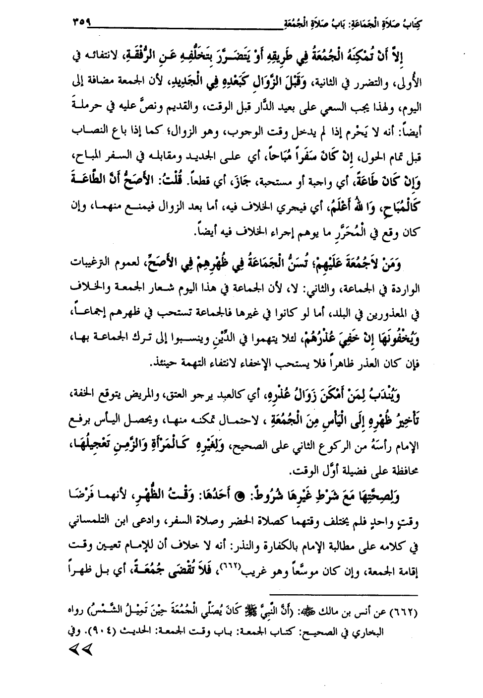 (¬662) عن أنس بن مالك - رضي الله عنه -: (أَنَّ النَّبِيَّ - صلى الله عليه وسلم - كَانَ يُصَلِّي الْجُمُعَةَ حِيْنَ تَمِيْلُ الشَّمْسُ) رواه البخاري في الصحيح: كتاب الجمعة: باب وقت الجمعة: الحديث (904). وفي =