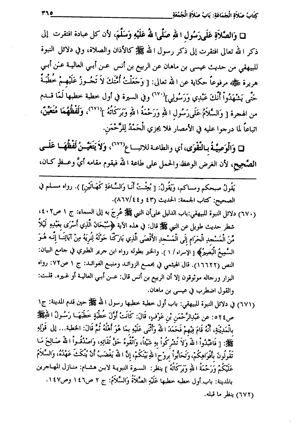 عَلَيْكُمْ وَرَحْمَةُ الله وَبَرَكَاتُهُ] ينظر: السيرة النبوية لابن هشام: منازل المهاجرين بالمدينة: باب أول خطبه خطبها عَلَيْهِ الصَّلاَةُ وَالسَّلاَمُ: ج 2 ص 146 وص 147.