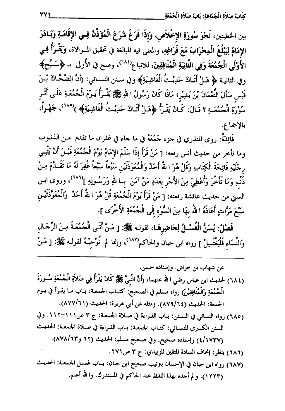 (¬685) رواه النسائي في السنن: باب القراءة في صلاة الجمعة: ج 3 ص 111 - 112. وفي السنن الكبرى للنسائي: كتاب الجمعة: باب القراءة في صلاة الجمعة: الحديث (1737/ 4) وإسناده صحيح. وفي صحيح مسلم: الحديث (62 و 63/ 878).