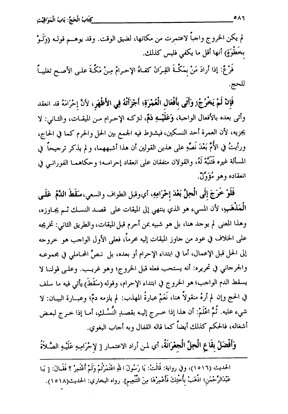 الحديث (1516)، وفي رواية: قَالَت: يَا رَسُولَ الله اعتمَرتُم وَلَم أعْتَمِرْ؟ فَقَالَ: [يَا عَبْدَ الرحْمَنِ؛ اذهَبْ بِأختِكَ فَأعمِرْهَا مِنَ التنْعِيمِ]. رواه البخاري: الحديث (1518).