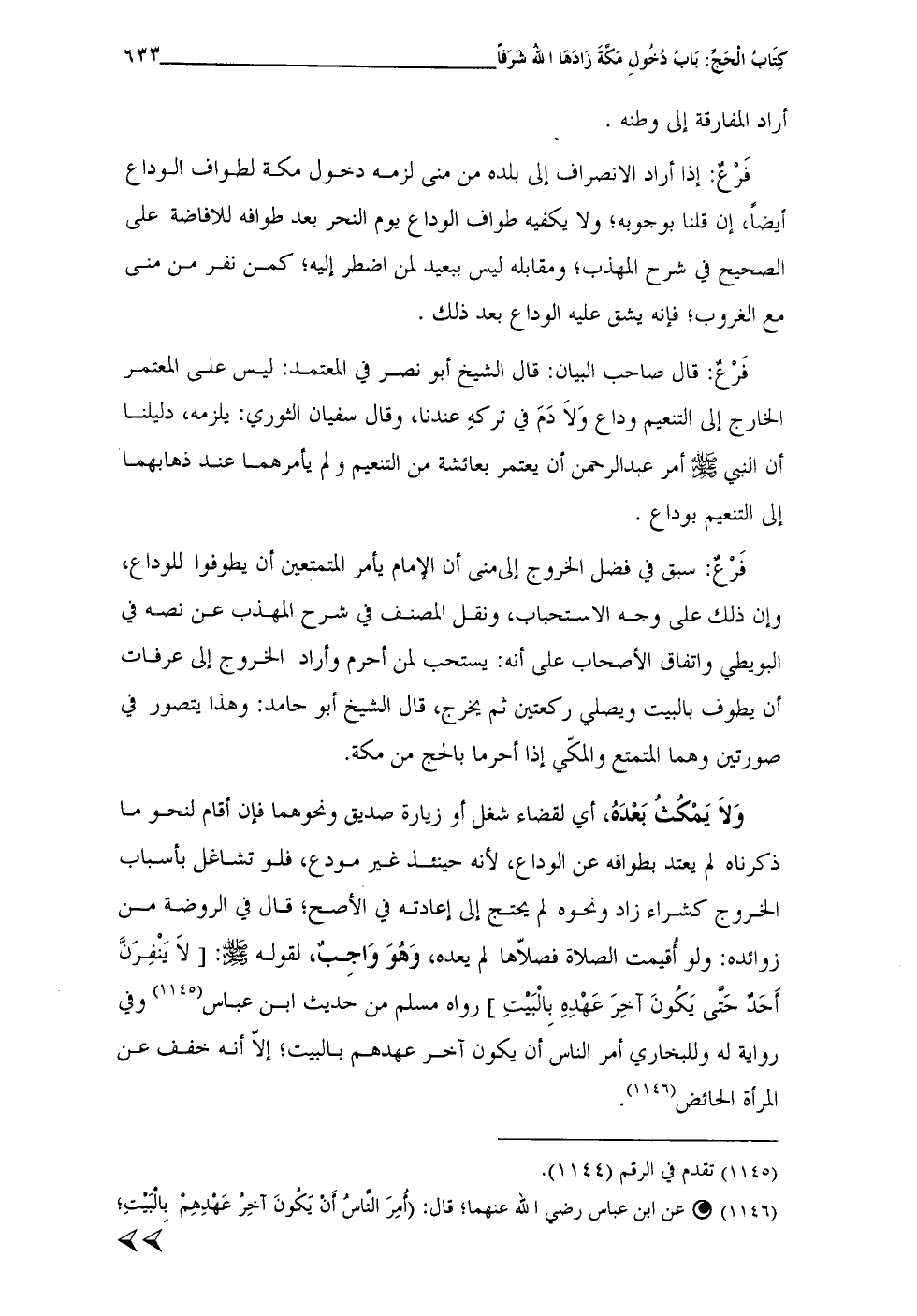 (¬1146) • عن ابن عباس رضى الله عنهما؛ قال: (أُمِرَ النَّاسُ أَنْ يَكُونَ آخِرُ عَهْدِهِمْ بِالْبَيْتِ؛ =