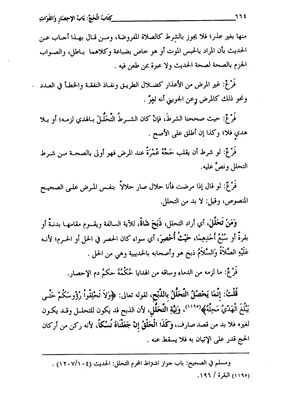 = ومسلم في الصحيح: باب جواز اشتراط المحرم التحلل: الحديث (104/ 1207). (1195) البقرة / 196.