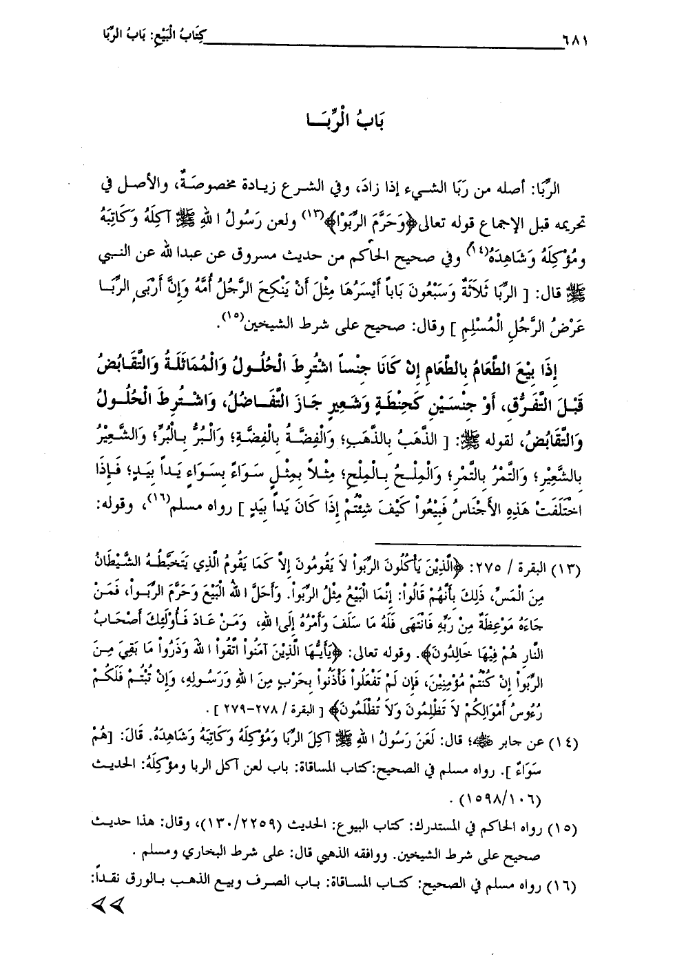 (¬14) عن جابر - رضي الله عنه -؛ قال: لَعَنَ رسُولُ الله - صلى الله عليه وسلم - آكِلَ الربا وَمُؤكِلَهُ وَكَاتِبَهُ وَشَاهِدَهُ. قَالَ: [هُم سَوَاءٌ]. رواه مسلم في الصحيح: كتاب المساقاة: باب لعن آكل الربا ومؤكِلَهُ: الحديث (106/ 1598).