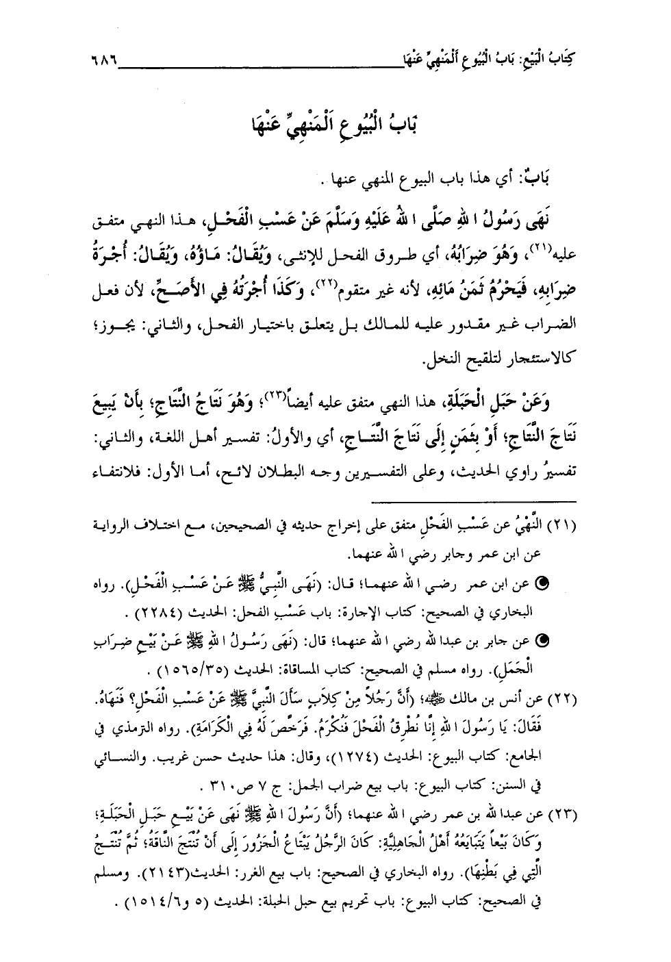 (¬21) النهيُ عن عَسْبِ الفَحلِ متفق على إخراج حديثه في الصحيحين، مع اختلاف الرواية عن ابن عمر وجابر رضى الله عنهما.