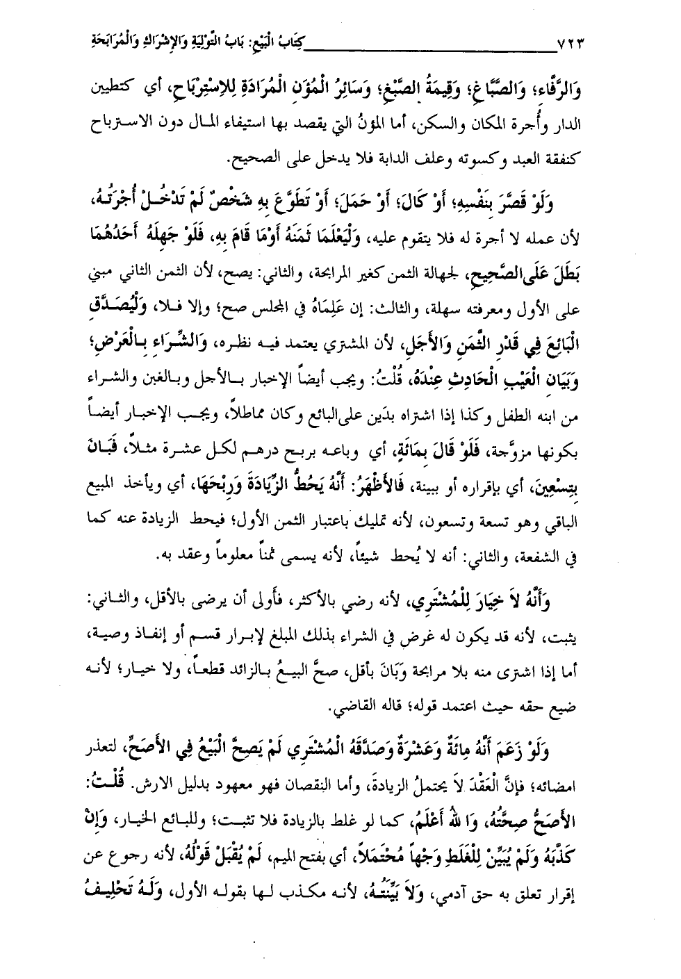 وَلَوْ قَصَّرَ بِنَفْسِهِ؛ أَوْ كَالَ؛ أَوْ حَمَلَ؛ أَوْ تَطَوَّعَ بِهِ شَخْصٌ لَمْ تَدْخُلْ أُجْرَتُهُ، لأن عمله لا أجرة له فلا يتقوم عليه، وَلْيَعْلَمَا ثَمَنَهُ أَوْ مَا قَامَ بِهِ، فَلَوْ جَهِلَهُ أَحَدُهُمَا بَطَلَ عَلَى الصَّحِيح، لجهالة الثمن كغير المرابحة، والثانى: يصح، لأن الثمن الثاني مبني على الأول ومعرفته سهلة، والثالث: إن عَلِمَاهُ في المجلس صح؛ وإلا فلا، وَلْيُصَدَّقِ الْبَائِعَ فِي قَدْرِ الثَّمَنِ وَالأجَلِ، لأن المشتري يعتمد فيه نظره، وَالشِّرَاءِ بِالْعَرْضِ؛ وَبَيَانِ الْعَيْبِ الْحَادِثِ عِنْدَهُ، قُلْتُ: ويجب أيضًا الإخبار بالأجل وبالغبن والشراء من ابنه الطفل وكذا إذا اشتراه بدَين على البائع وكان مماطلًا، ويجب الإخبار أيضًا بكونها مزوَّجة، فَلَوْ قَالَ بِمَائَةٍ، أي وباعه بربح درهم لكل عشرة مثلًا، فَبَانَ بِتِسْعِينَ، أي بإقراره أو ببينة، فَالأَظْهَرُ: أَنهُ يَحُطُّ الزيادَةَ وَرِبْحَهَا، أي ويأخذ المبيع الباقى وهو تسعة وتسعون، لأنه تمليك باعتبار الثمن الأول؛ فيحط الزيادة عنه كما في الشفعة، والثاني: أنه لا يُحط شيئًا، لأنه يسمى ثمنًا معلومًا وعقد به.