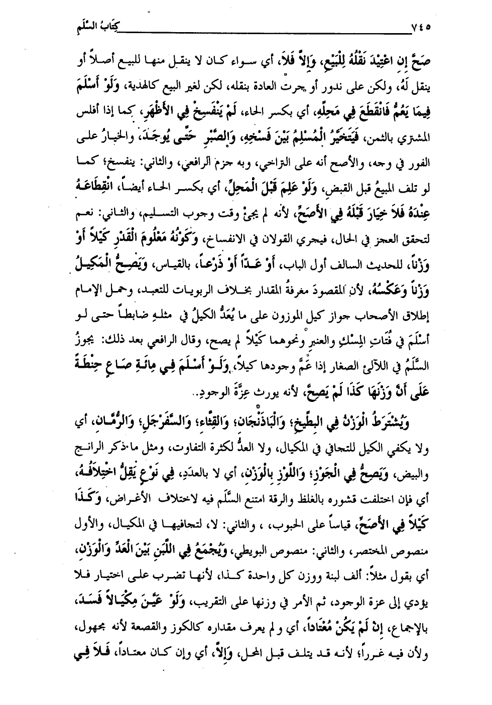 صَح إِنِ اعْتِيْدَ نَقْلُهُ لِلْبَيْع، وإلا فَلاَ، أي سواء كان لا ينقل منها للبيع أصلًا أو ينقل لَهُ، ولكن على ندور أو جرت العادة بنقله، لكن لغير البيع كالهدية، وَلَوْ أَسْلَمَ فِيمَا يَعُمُّ فانقَطَعَ في مَحِلهِ، أي بكسر الحاء، لَم يَنْفَسِخْ في الأظْهَرِ، كما إذا أفلس المشتري بالثمن، فَيَتَخَيرُ المُسْلِمُ بَيْنَ فَسخِهِ، وَالصبرِ حَتى يُوجَدَ، والخيارُ على الفور في وجه، والأصح أنه على التراخي، وبه جزم الرافعي، والثانى: ينفسخ؛ كما لو تلف المبيعُ قبل القبضِ، وَلَوْ عَلِمَ قبلَ المَحِلِّ، أي بكسر الحاء أيضًا، انْقِطَاعَهُ عِندَهُ فَلا خِيَارَ قَبْلَهُ في الأصَحِّ, لأنه لم يجئْ وقت وجوب التسليم، والثانى: نعم لتحقق العحز في الحال، فيجرى القولان في الانفساخ، وَكَوْنُهُ مَعلُومَ القَدرِ كَيْلًا أَوْ وَزْنًا، للحديث السالف أول الباب، أو عَدًّا أَوْ ذَرْعًا، بالقياس، وَيصِحُّ المَكيلُ وَزْناَ وَعَكسُهُ، لأن المقصودَ معرفةُ المقدار بخلاف الربويات للتعبد، وحمل الإمام إطلاق الأصحاب جواز كيل الموزون على ما يُعَدٌ الكيلُ في مثلهِ ضابطًا حتى لو أسلَمَ في فُتَاتِ المِسك والعنبر ونحوهما كَيْلًا لم يصح، وقال الرافعي بعد ذلك: يجوزُ السَّلَمُ في اللآلئ الصغار إذا عمَّ وجودها كيلًا، وَلَو أسلَمَ في مِائَةِ صَاعٍ حِنْطَةً عَلَى أَنه وَزْنَهَا كَذَا لَم يَصحَّ, لأنه يورث عِزَّة الوجودِ.