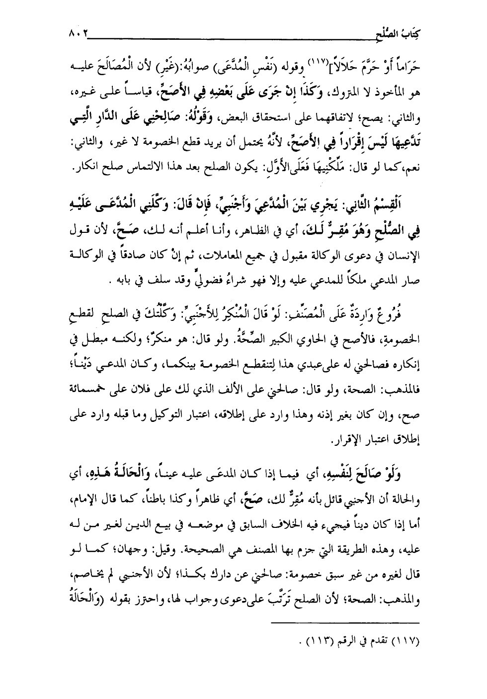 حَرَامًا أَوْ حَرَّمَ حَلَالًا] (¬117) وقوله (نَفْسِ الْمُدَّعَى) صوابُهُ: (غَيْرِ) لأن الْمُصَالَحَ عليه هو المأخوذ لا المتروك، وَكَذَا إِنْ جَرَى عَلَى بَعْضِهِ في الأَصَحِّ، قياسًا على غيره، والثاني: يصح؛ لاتفاقهما على استحقاق البعض، وَقَوْلُهُ: صَالِحْنِي عَلَى الدَّارِ الَّتِي تَدَّعِيهَا لَيْسَ إِقْرَارًا في الأَصَحِّ، لأَنَّهُ يحتمل أن يريد قطع الخصومة لا غير، والثاني: نعم، كما لو قال: مَلِّكْنِيهَا فَعَلَى الأَوَّلِ: يكون الصلح بعد هذا الالتماس صلح انكار.