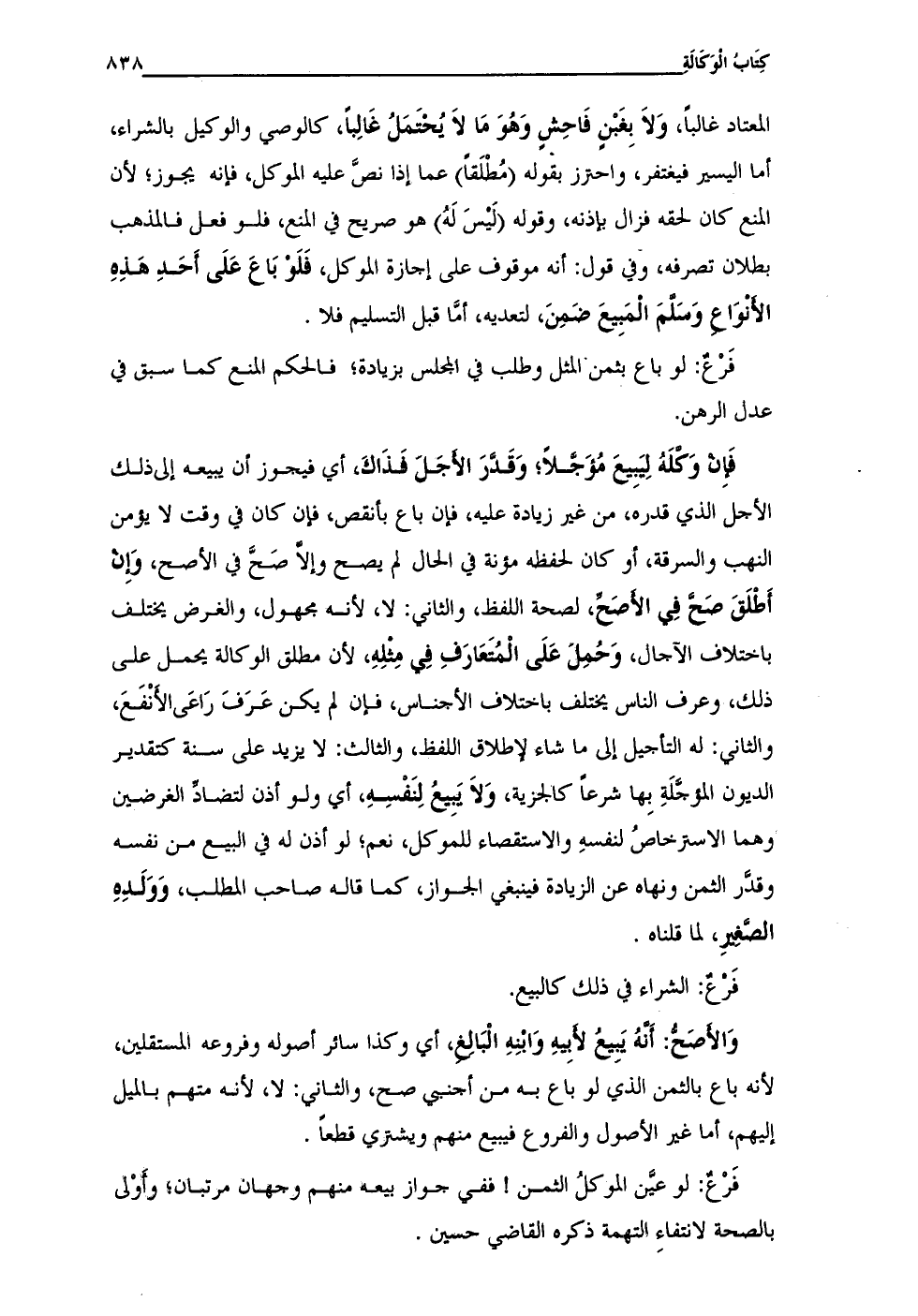 المعتاد غالبًا، وَلَا بِغَبْنٍ فَاحِش وَهُوَ مَا لَا يُحتَمَلُ غالبًا، كالوصي والوكيل بالشراء، أما اليسير فيغتفر، واحترز بقوله (مُطْلَقًا) عما إذا نصَّ عليه الموكل، فإنه مجوز؛ لأن المنع كان لحقه فزال بإذنه، وقوله (ليسَ لَهُ) هو صريح في المنع، فلو فعل فالمذهب بطلان تصرفه، وفي قول: أنه موقوف على إجازة الموكل، فَلَوْ بَاعَ عَلَى أحَدِ هَذِهِ الأنوَاع وَسلمَ المَبِيعَ ضَمِنَ، لتعديه، أمَّا قبل التسليم فلا.