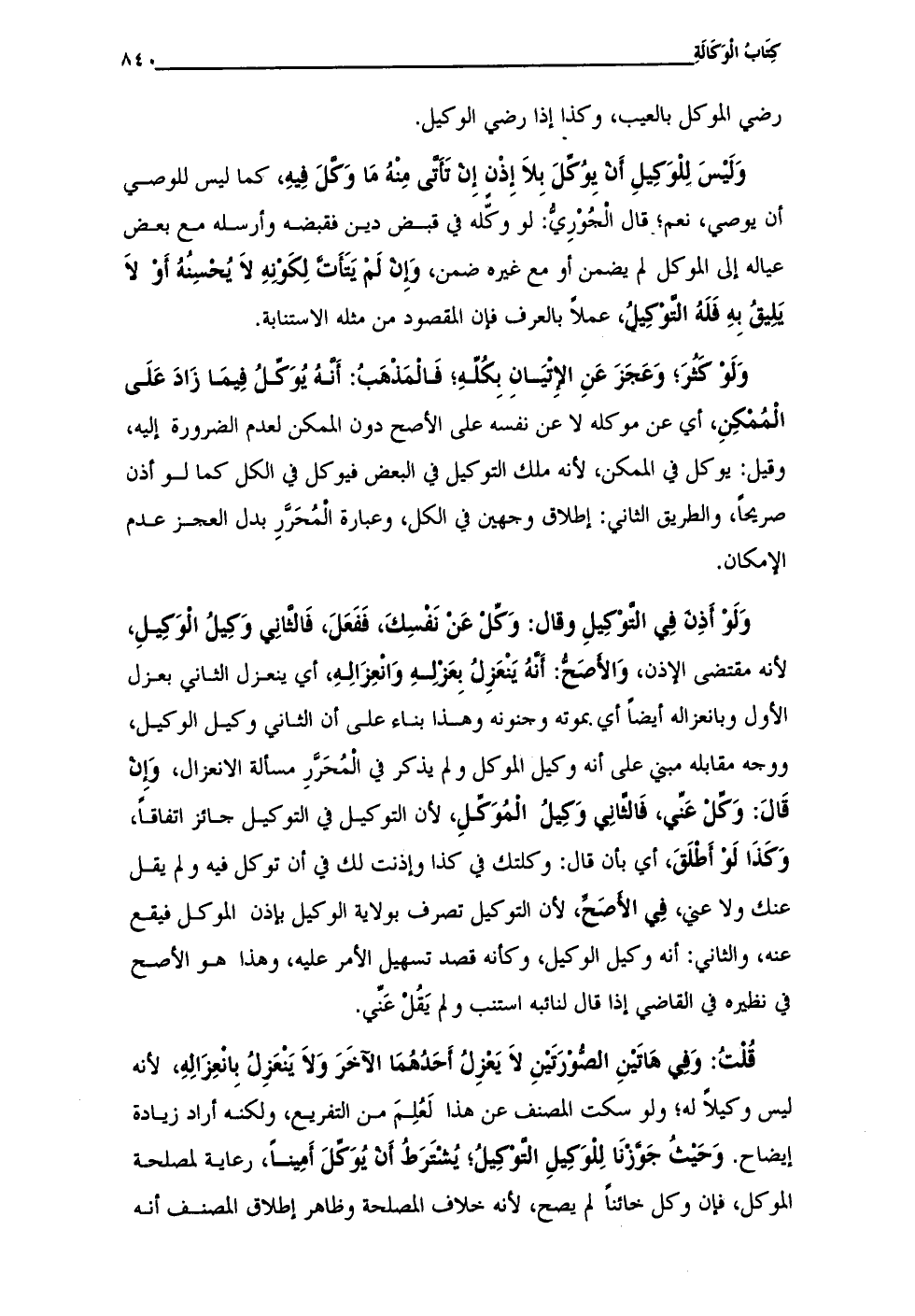 قُلتُ: وَفي هَاتَينِ الصُّورَتَينِ لَا يَعْزِلُ أَحَدُهُمَا الآخَرَ وَلَا يَنْعَزِلُ بِانْعِزَالِهِ، لأنه ليس وكيلًا له؛ ولو سكت المصنف عن هذا لَعُلِمَ من التفريع، ولكنه أراد زيادة إيضاح. وَحَيثُ جَوَّزنَا لِلوَكِيلِ التوكِيلُ؛ يُشتَرَطُ أن يُوَكِّلَ أَمِينًا، رعاية لمصلحة الموكل، فإن وكل خائنًا لم يصح، لأنه خلاف المصلحة وظاهر إطلاق المصنف أنه